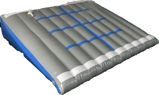 De onder zeer hoge temperatuur verlijmde naden zorgen voor 100% lucht- en waterdichtheid en is de druk en hardheid van het schuin vlak eenvoudig te reguleren. De extra dikke kwaliteit maakt dat je het schuin vlak ook buiten kunt gebruiken, zoals in het gras, op het zand en zelfs in het water. Het is licht van gewicht en standaard voorzien van nylon handvatten en inclusief tas zodat je hem makkelijk kunt verplaatsen. Zo kun je dus overal je favoriete acrobatische oefeningen uitvoeren. Het schuin vlak is onderaan voorzien van zacht klittenband zodat u door middel van een connector deze bijvoorbeeld aan een Airtrack kan koppelen.