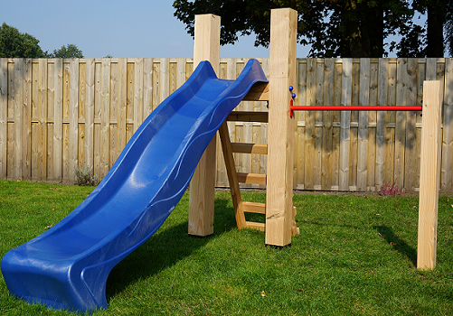 Dit robuuste aanbouw duikelrek is gemaakt van Douglas balken van 14 x 14 cm. Erg leuk om aan een bestaande schommel of ander element te bevestigen. \n