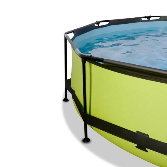 Ontdek hoe stevig een rond opzetzwembad kan zijn: het gepoedercoate stalen frame en de sterke poten van het EXIT Lime zwembad zorgen ervoor dat het bad altijd stabiel staat en jarenlang meegaat. De meegeleverde filterpomp houdt het water schoon en in beweging zodat vervuiling van het water wordt tegengegaan. In het EXIT Lime zwembad neem je altijd een frisse duik!