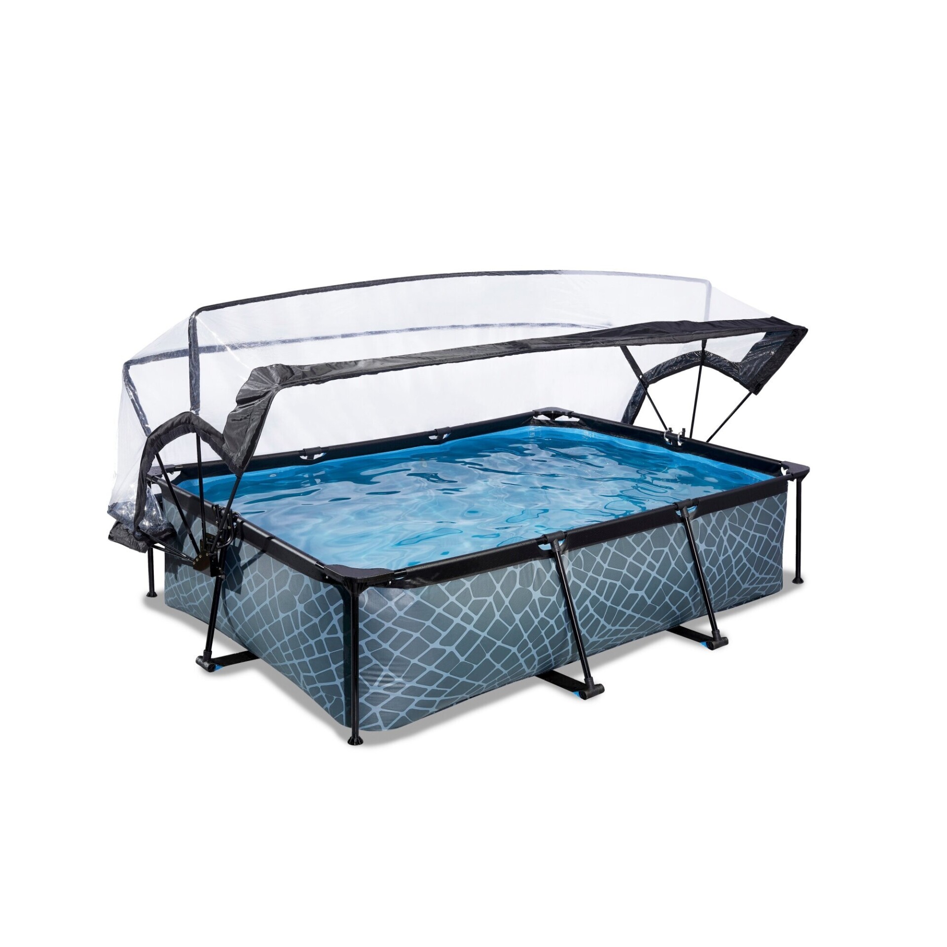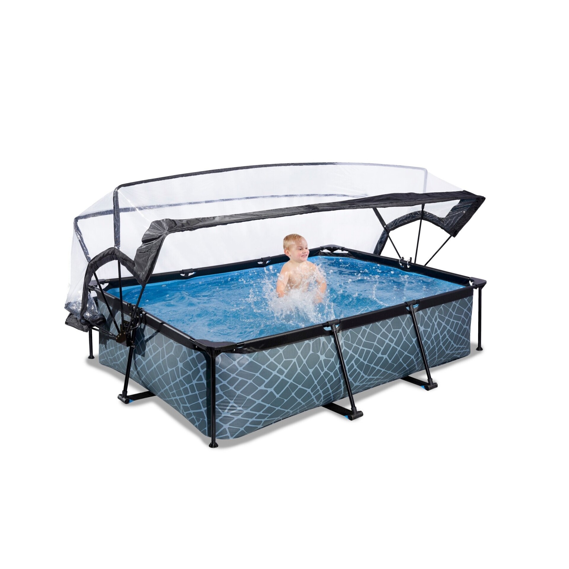 Het EXIT Stone zwembad 220 x 150 x 65 cm is een rechthoekig, grijskleurig frame zwembad met overkapping. Dit compacte zwembad is standaard voorzien van een filterpomp en valt op tussen andere baden door zijn stoere steenpatroon. Ben je op zoek naar een geschikt zwembad voor jonge kinderen die niet te veel ruimte in de tuin inneemt? Kies dan voor dit unieke en hoogwaardige frame zwembad met overkapping van EXIT Toys!
