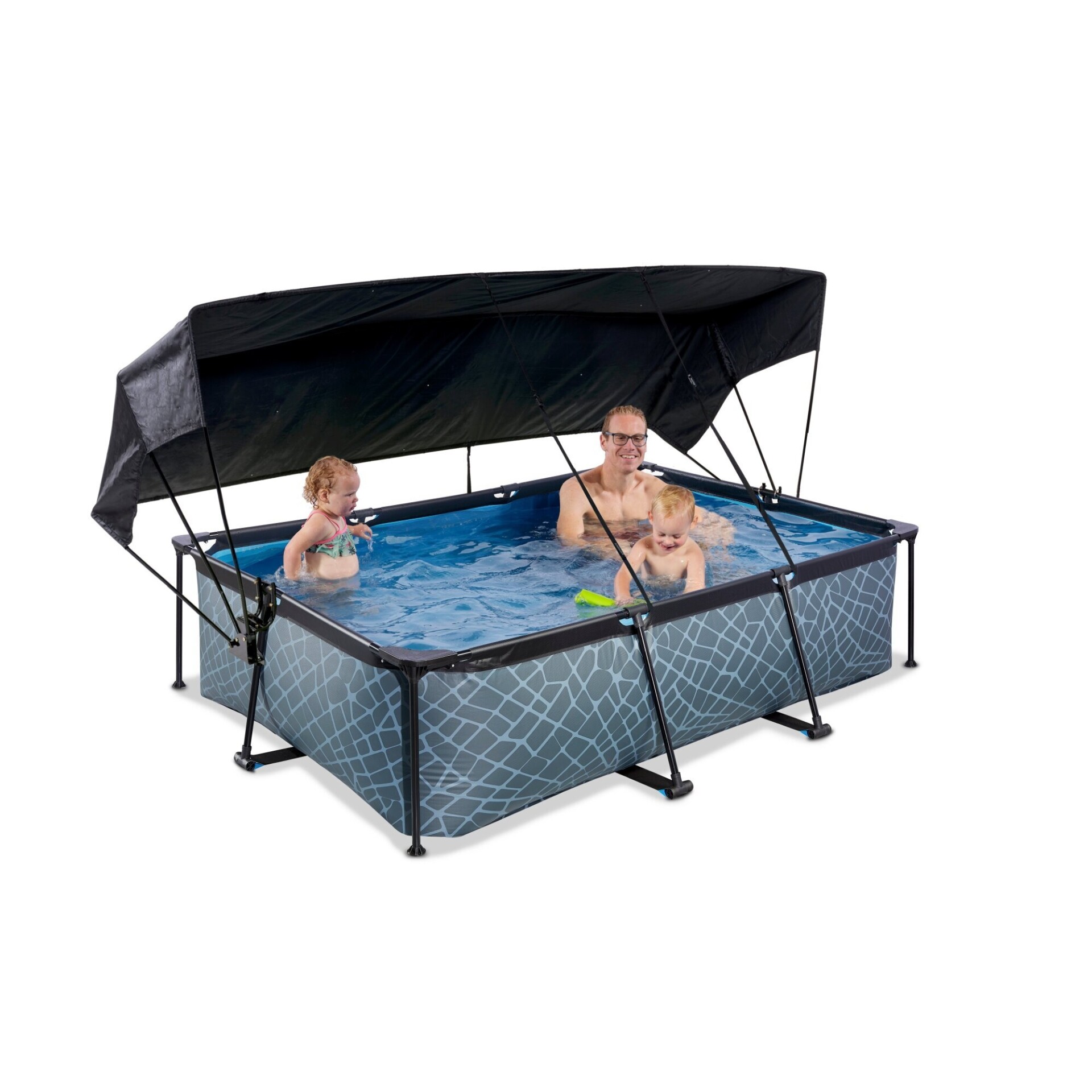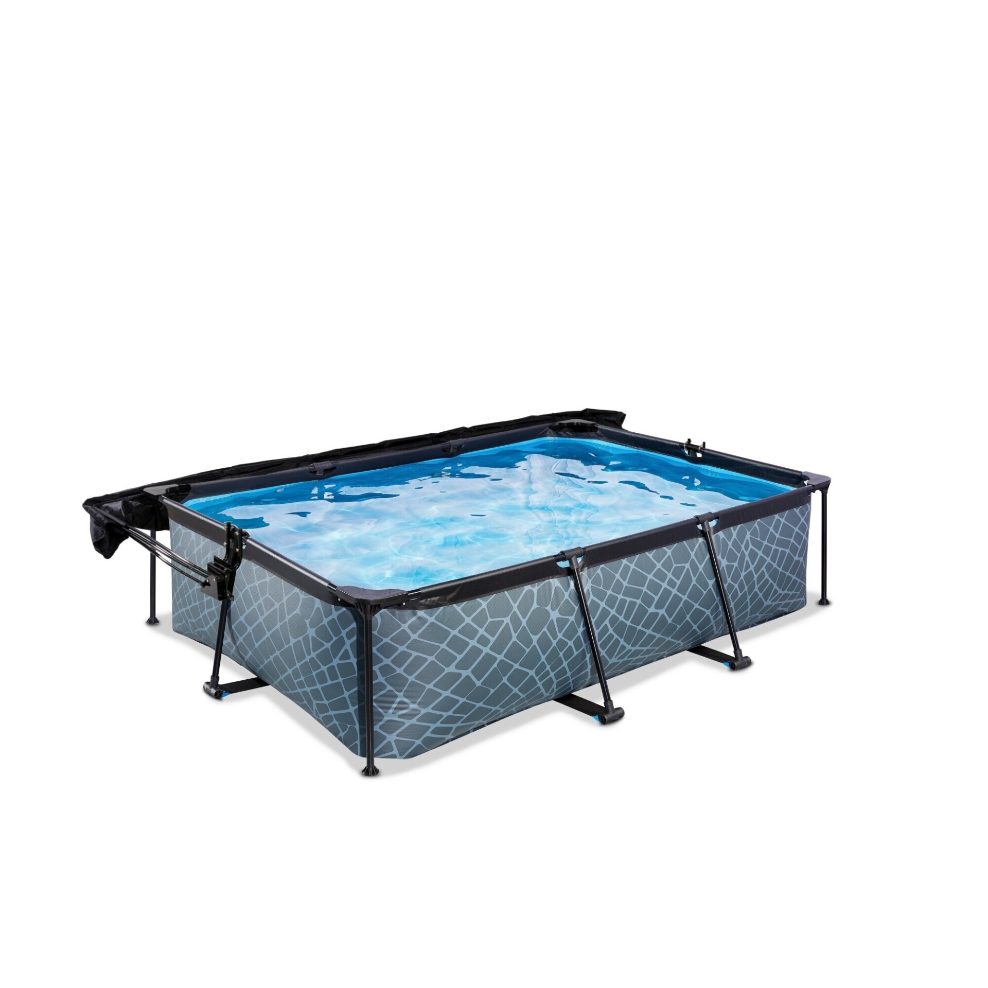 Het EXIT Stone zwembad 220 x 150 x 65 cm is een rechthoekig, grijskleurig frame zwembad. Dit compacte zwembad is standaard voorzien van een filterpomp en schaduwdoek, die je op zomerdagen beschermt tegen de zon. Ben je op zoek naar een geschikt zwembad voor jonge kinderen die niet te veel ruimte in de tuin inneemt? Kies dan voor dit unieke en hoogwaardige frame zwembad van EXIT Toys!