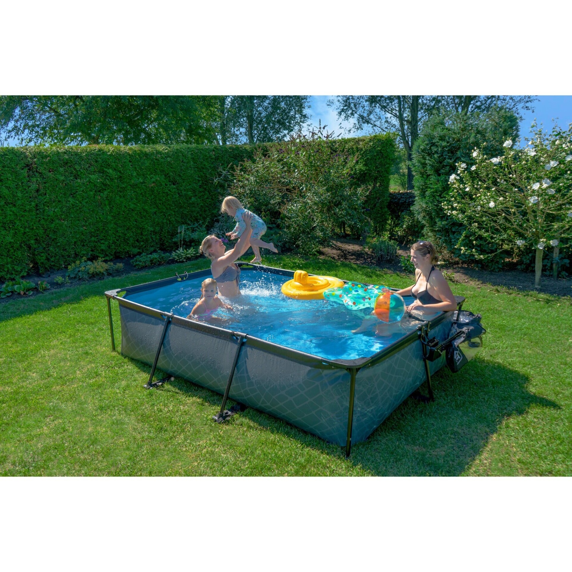 Het EXIT Stone zwembad 300 x 200 x 65 cm is een rechthoekig grijskleurig frame zwembad. Dit compacte zwembad is standaard voorzien van een filterpomp en valt op tussen andere baden door zijn stoere steenpatroon. Ben je op zoek naar een geschikt zwembad voor jonge kinderen of een ondiep bad om zelf lekker in af te koelen? Kies dan voor dit unieke en hoogwaardige frame zwembad van EXIT Toys!