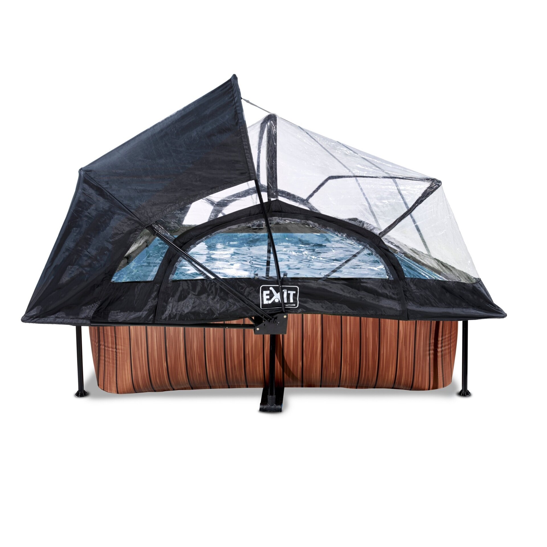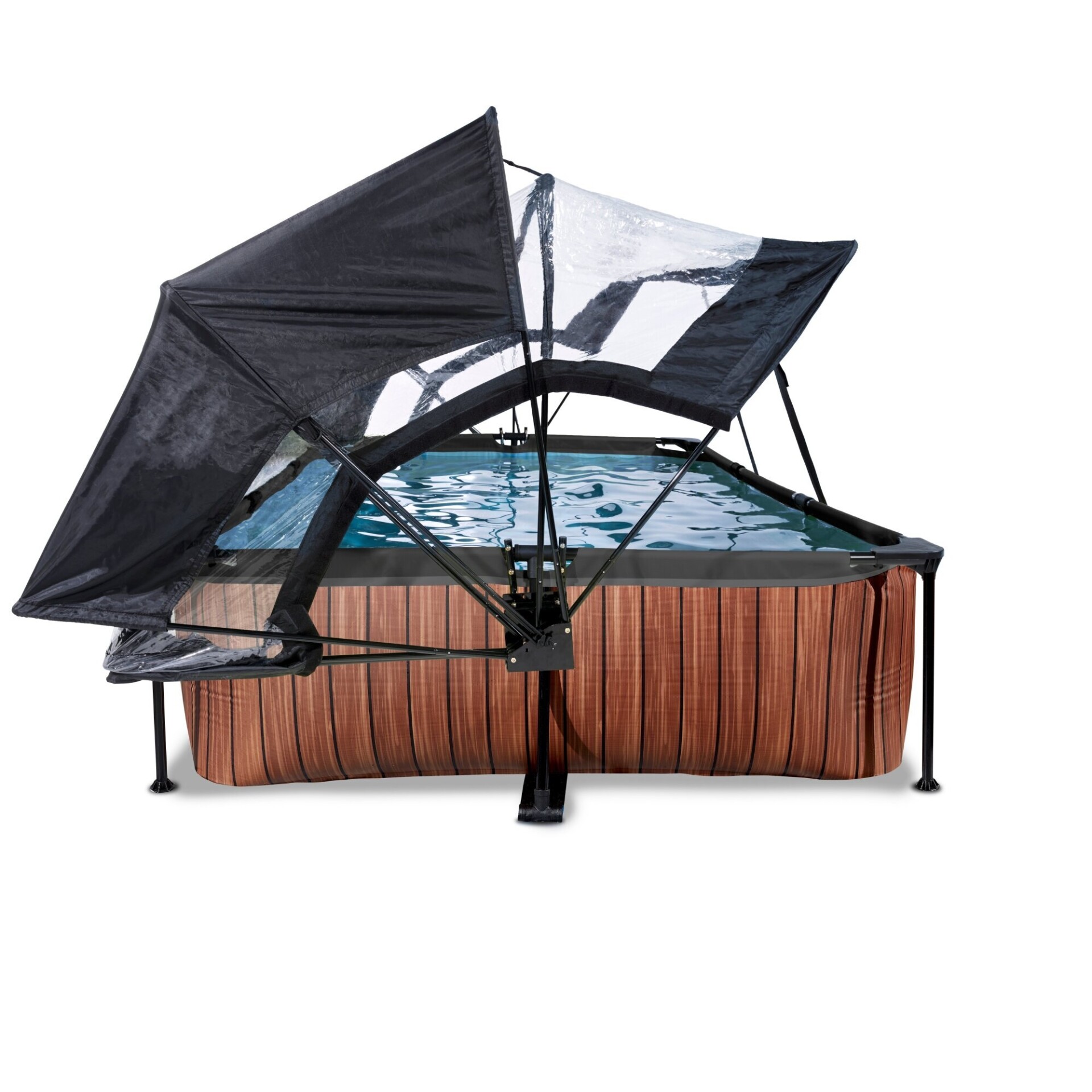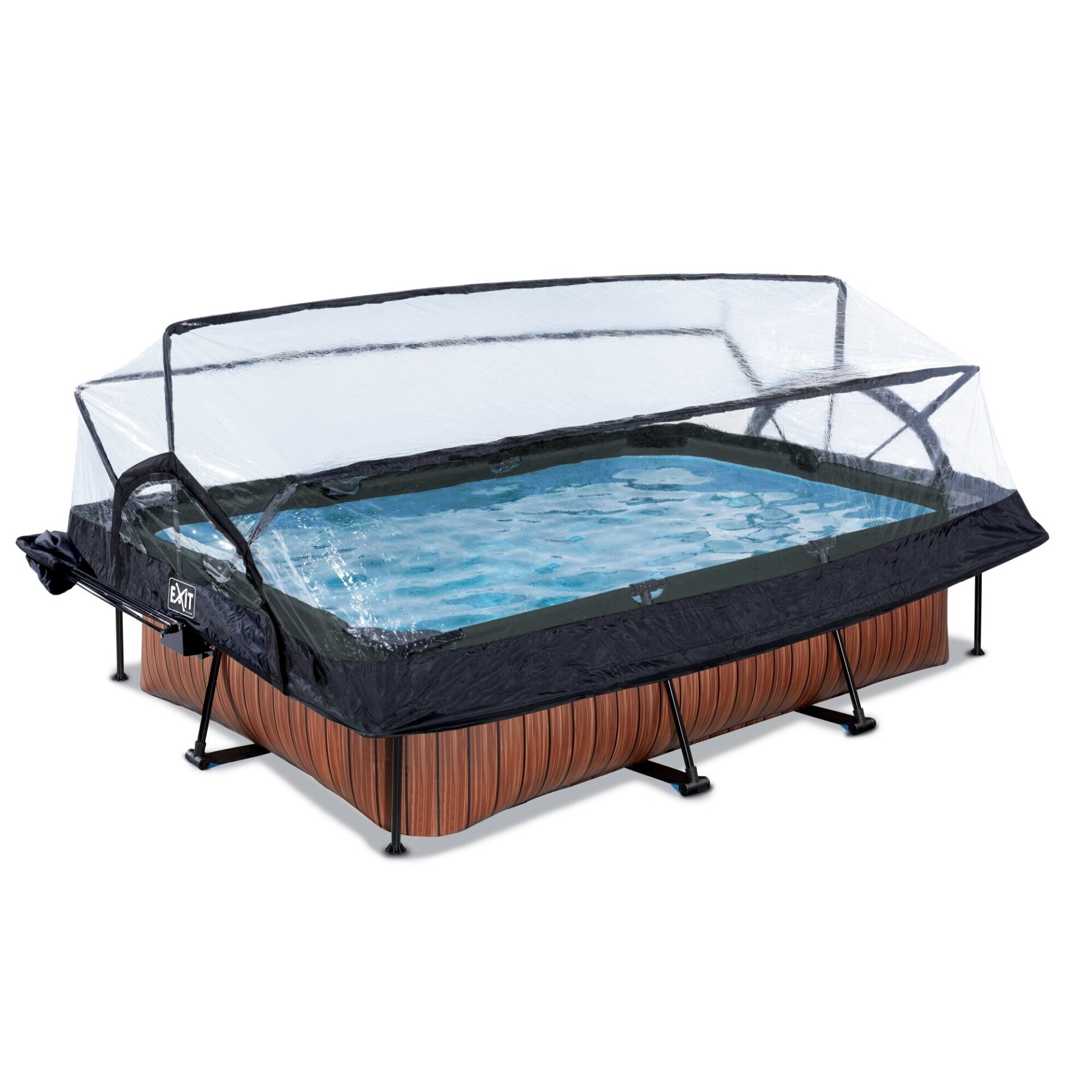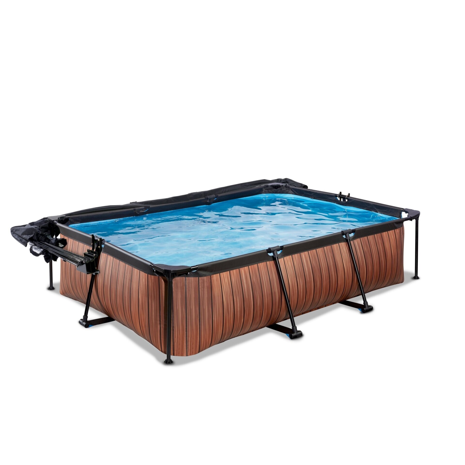 Het EXIT Wood zwembad 300 x 200 x 65 cm is een rechthoekig frame zwembad met overkapping en schaduwdoek. Dit compacte zwembad met houtlook is standaard voorzien van een filterpomp en valt op tussen andere baden door zijn stoere houtpatroon. Ben je op zoek naar een geschikt zwembad voor jonge kinderen of een ondiep bad om zelf lekker in af te koelen? Kies dan voor dit unieke en hoogwaardige frame zwembad met overkapping van EXIT Toys!