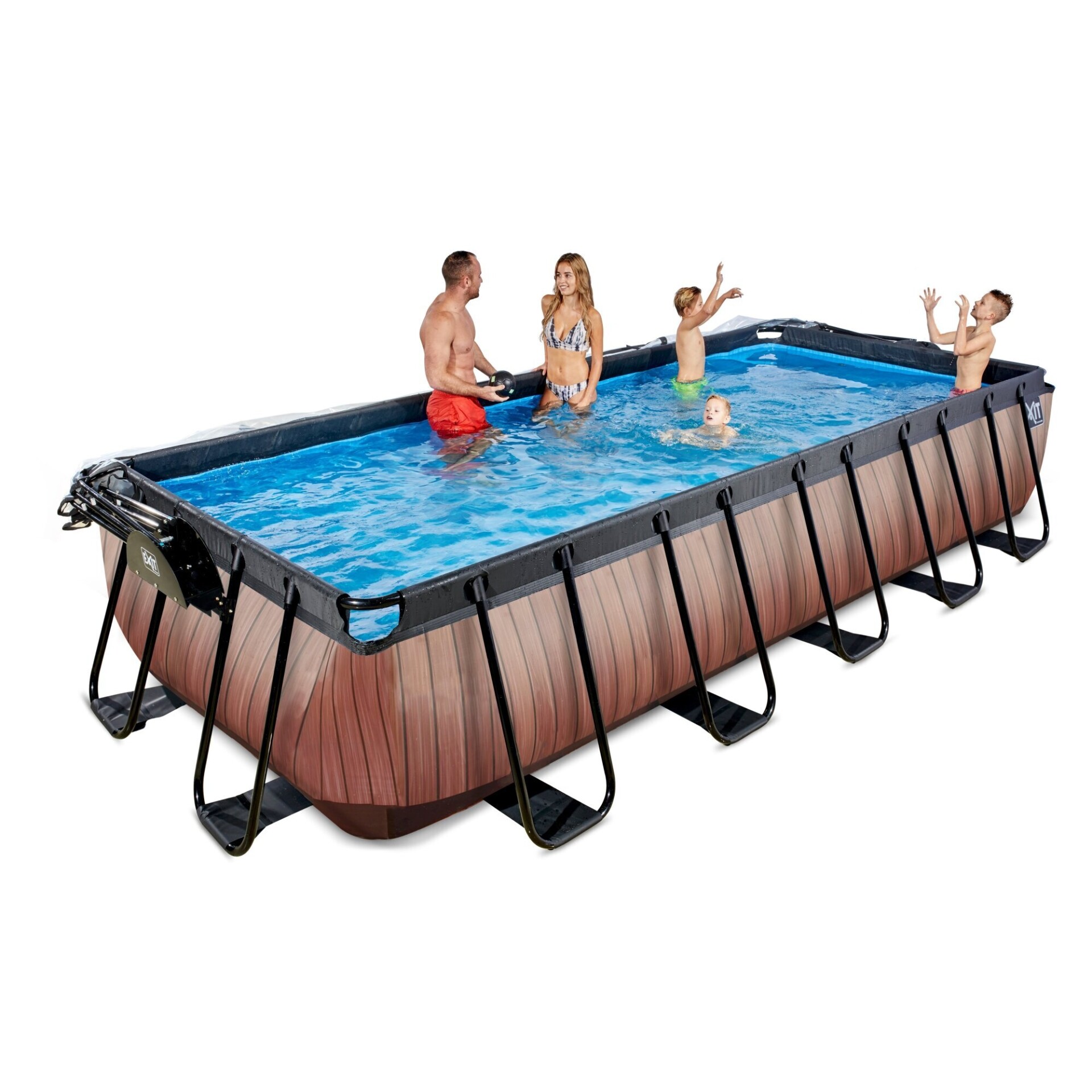 Het EXIT Wood zwembad 540 x 250 x 100 cm is een rechthoekig frame zwembad met overkapping. Dit grote zwembad met houtlook is standaard voorzien van een zandfilterpomp en een zwembadtrap, waarmee je veilig het zwembad in en uit kunt stappen. De frame zwembaden met overkapping van EXIT Toys zijn multifunctioneel, duurzaam en dé perfecte oplossing voor wisselvallig zomerweer!