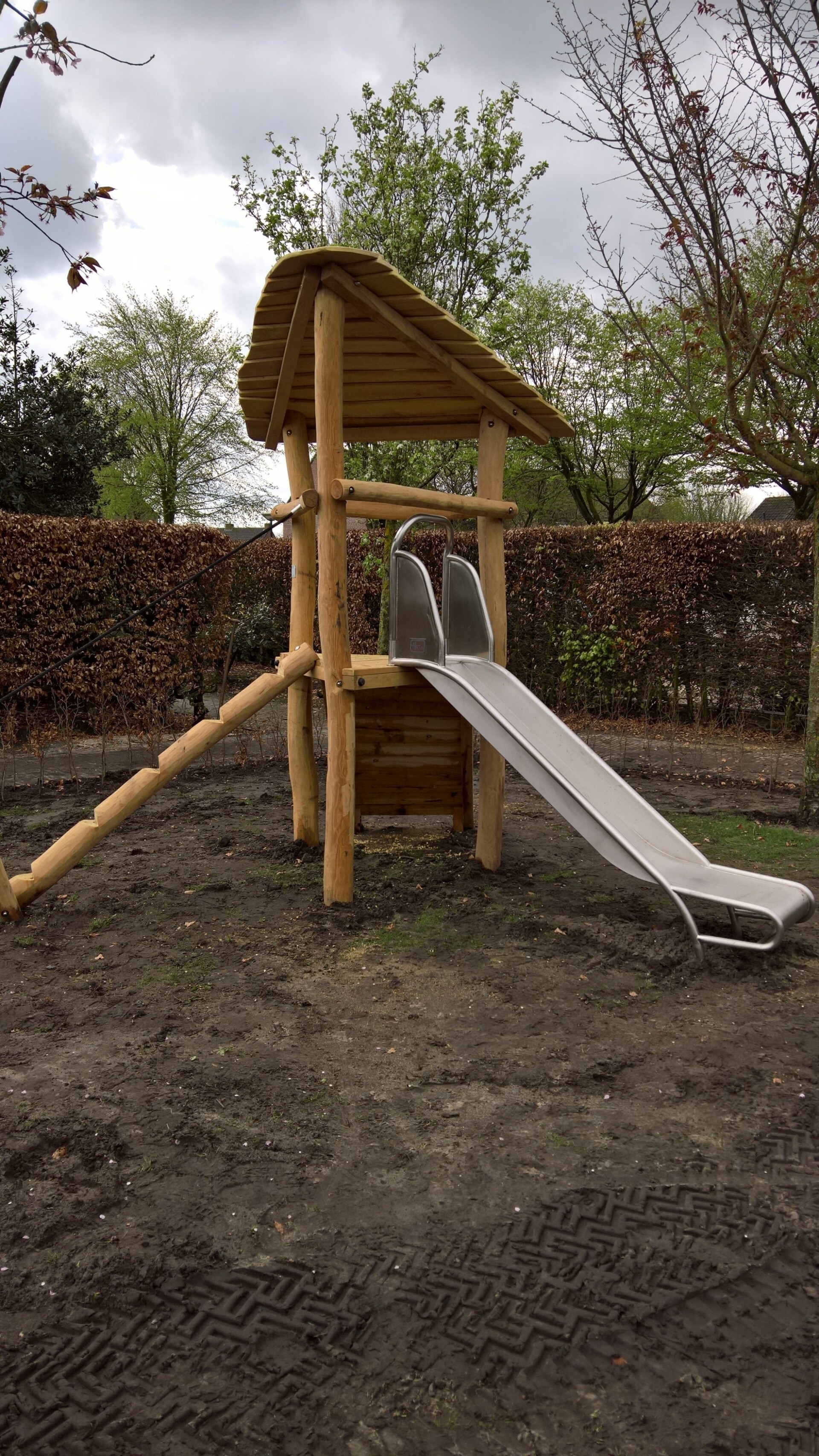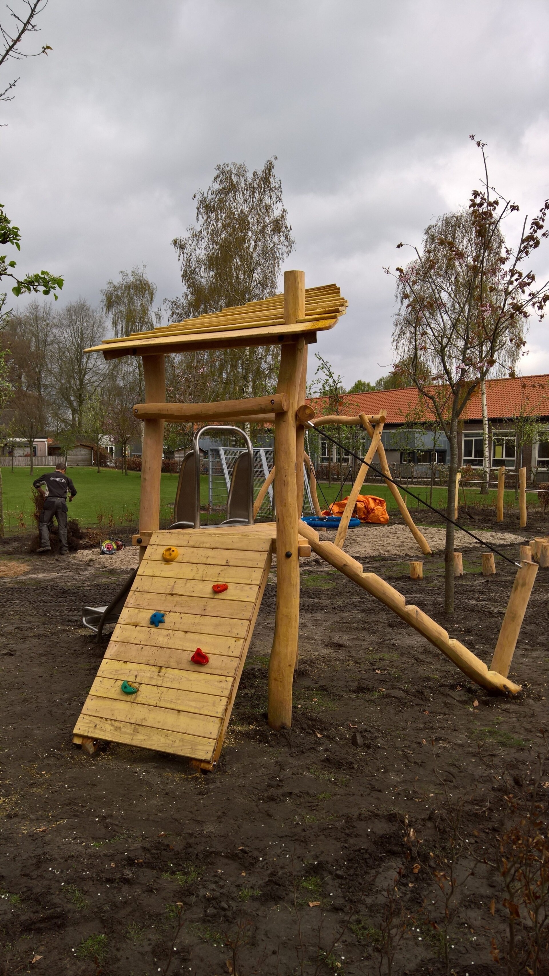 – toren is compleet gemonteerd m.u.v. glijbaan, klimstam en klimwand