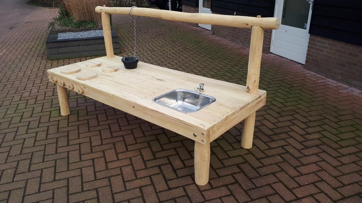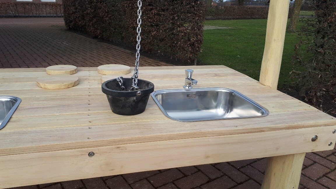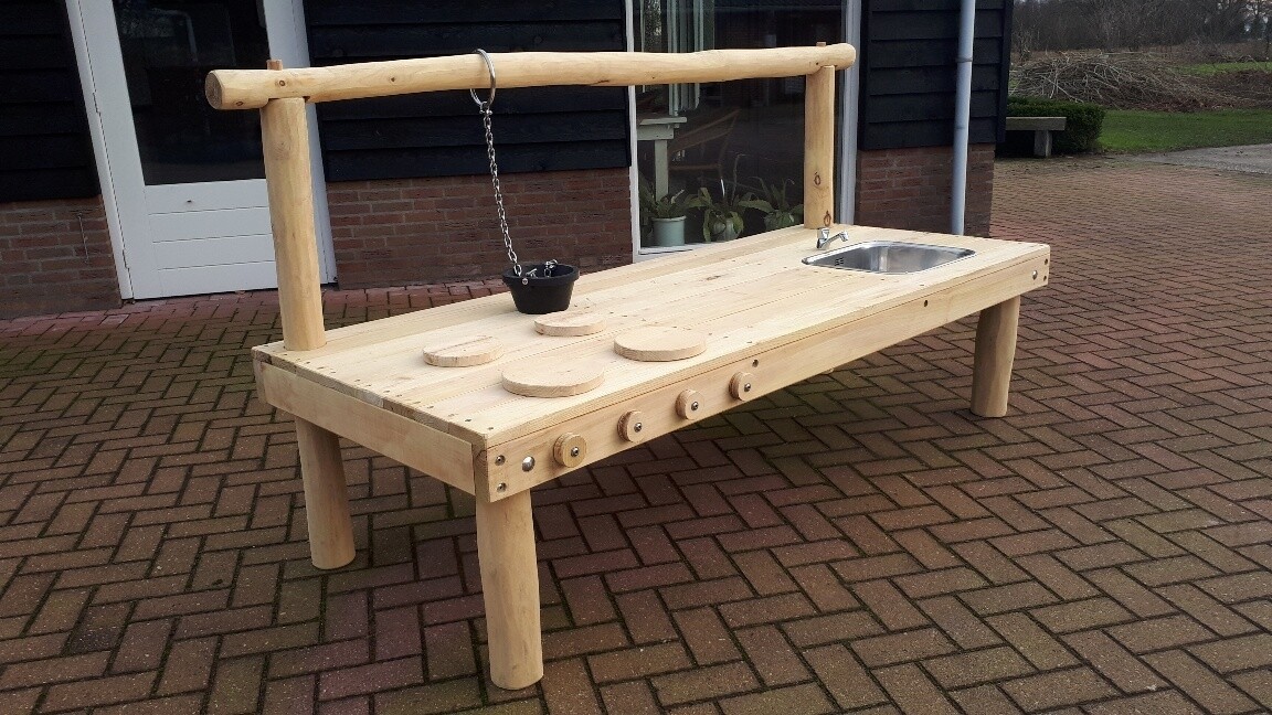 robinia speelkeukentjes, modderkeukens gecertificeerd voor openbaar gebruik. Deze worden compleet gemonteerd geleverd.