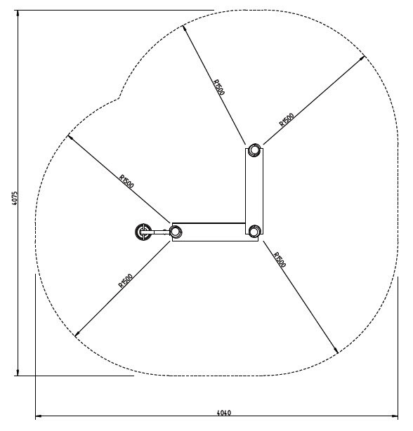 afmeting toestel +/- 142x108cm, benodigde vrije ruimte +/- 404x408cm