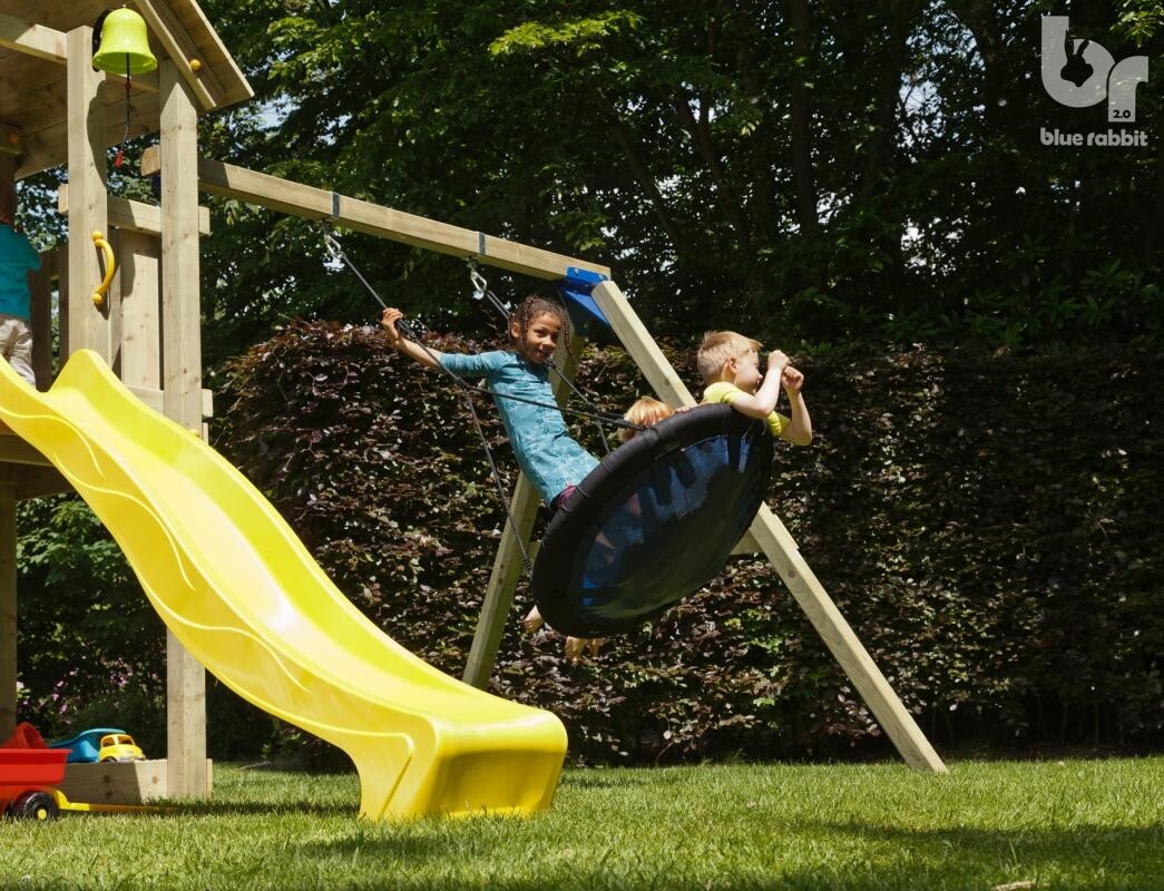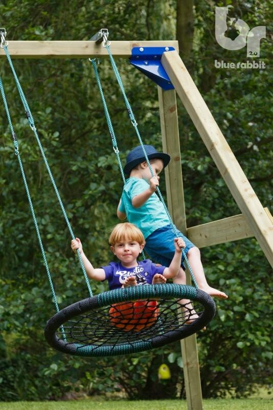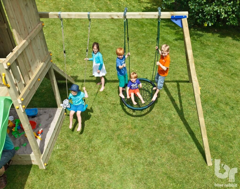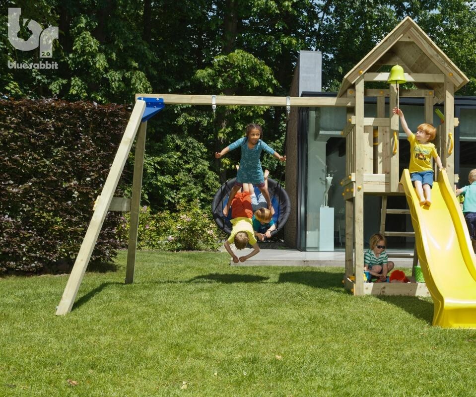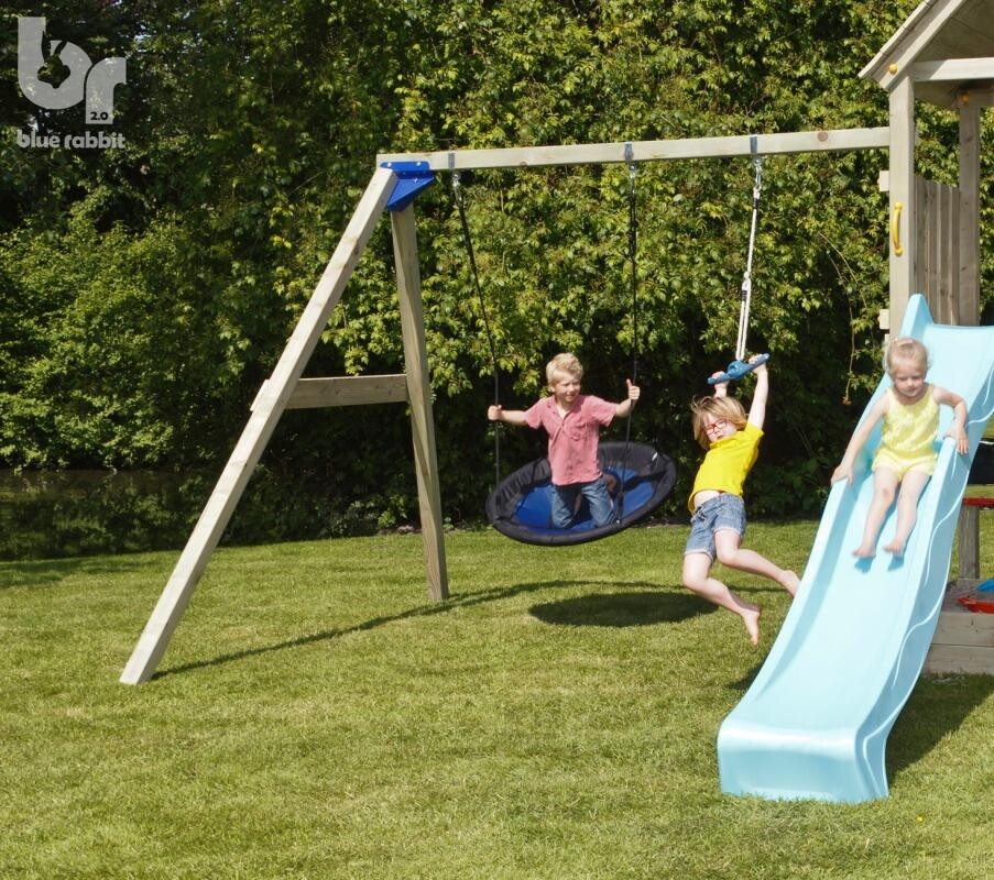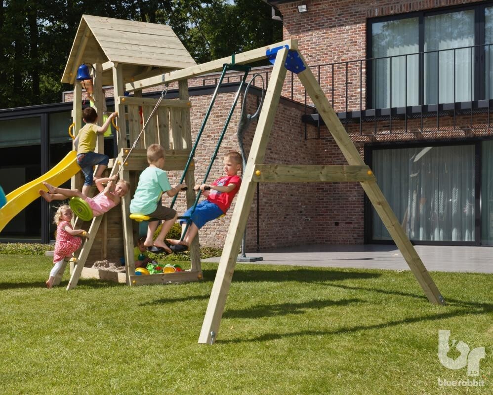 Ga je voor een speeltoren en vrijstaande schommel? Of neemt dat net te veel ruimte in beslag? Kies dan deze aanbouwschommel met een hoogte van 234 cm welke eenvoudig aan de Blue Rabbit speelhuizen te bevestigen is. De aanbouw wordt zonder zitjes geleverd. Er is een ruim aanbod aan zitjes en andere varianten schommels verkrijgbaar.