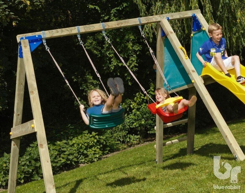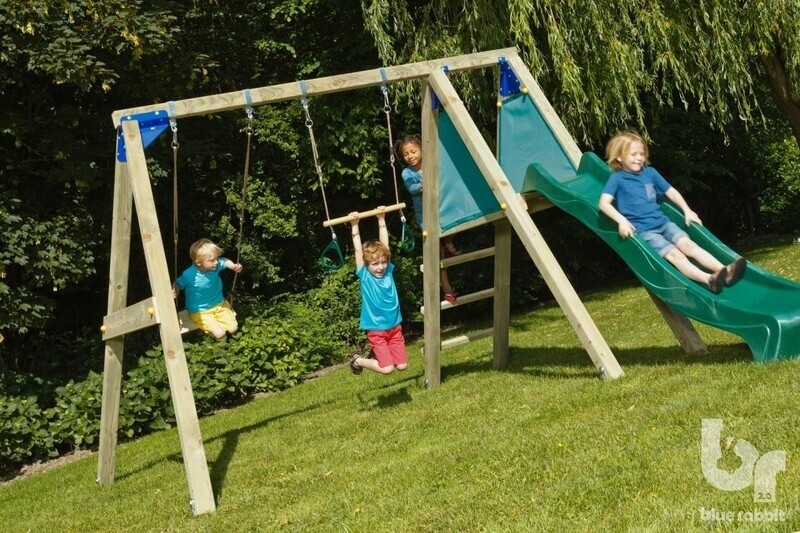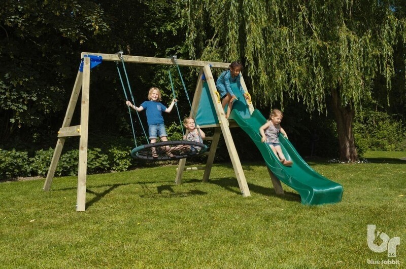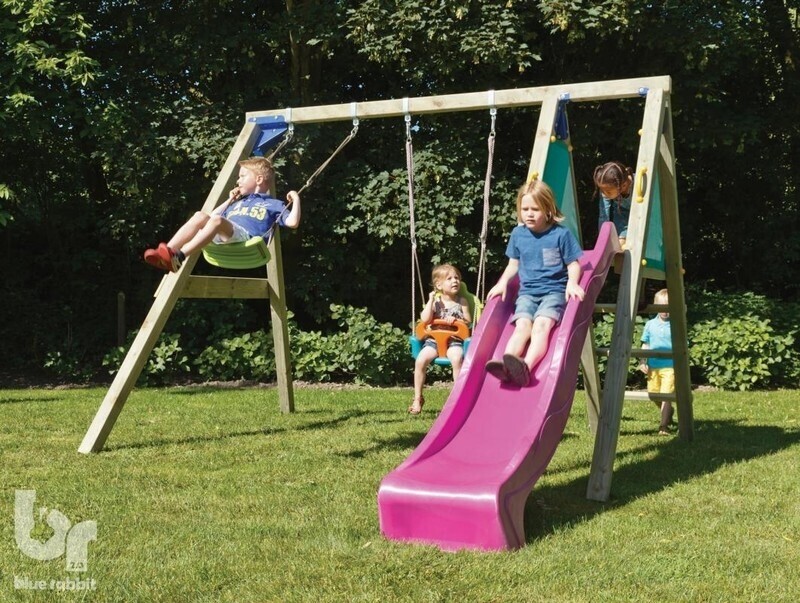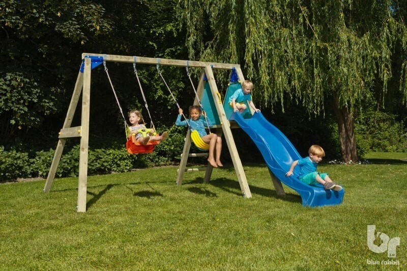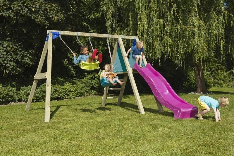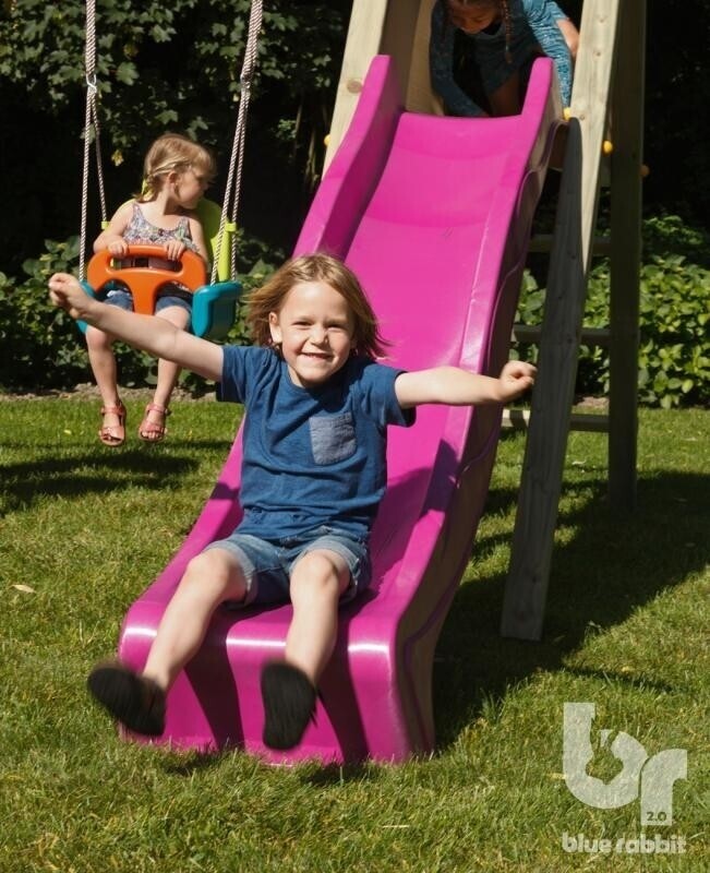 Met dit prachtige speeltoestel zijn uw kinderen urenlang zoet! Schommelen en glijden in 1 speeltoestel. Het speeltoestel wordt geleverd exclusief schommels en glijbaan. Hiervoor kunt u een keuze maken uit verschillende soorten zitjes en toebehoren. De glijbaan is te bestellen in diverse kleuren. Platformhoogte is 120 cm, een glijbaan van 240 is hiervoor geschikt.