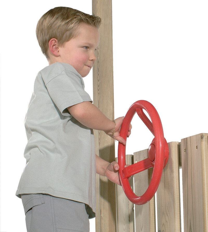 Leuk accessoire voor aan je speelhuis. Stuurwiel van kunststof in de kleur rood.