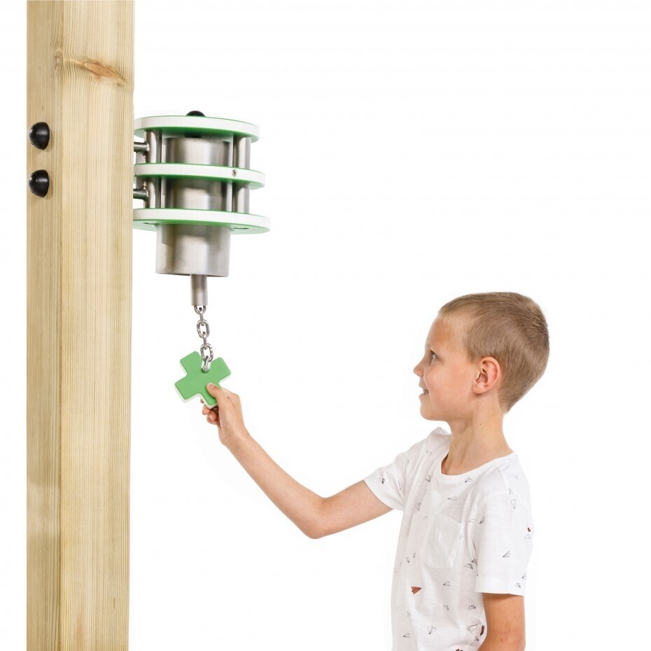 Deze extra grote bel is gemaakt van RVS, gecombineerd met stevig kunststof (HDPE). Deze speelgoed bel maakt een speelhuis nog aantrekkelijker. Een bel spreekt altijd erg aan bij kinderen; de fantasie wordt er door geprikkeld. Hierdoor ontstaan de leukste rollenspelen. 'Bel X' is leuk te combineren met de andere professionele speeltoestel accessoires uit de 'X-collectie' van White Rhino: Telescoop X en Stuurwiel X.
