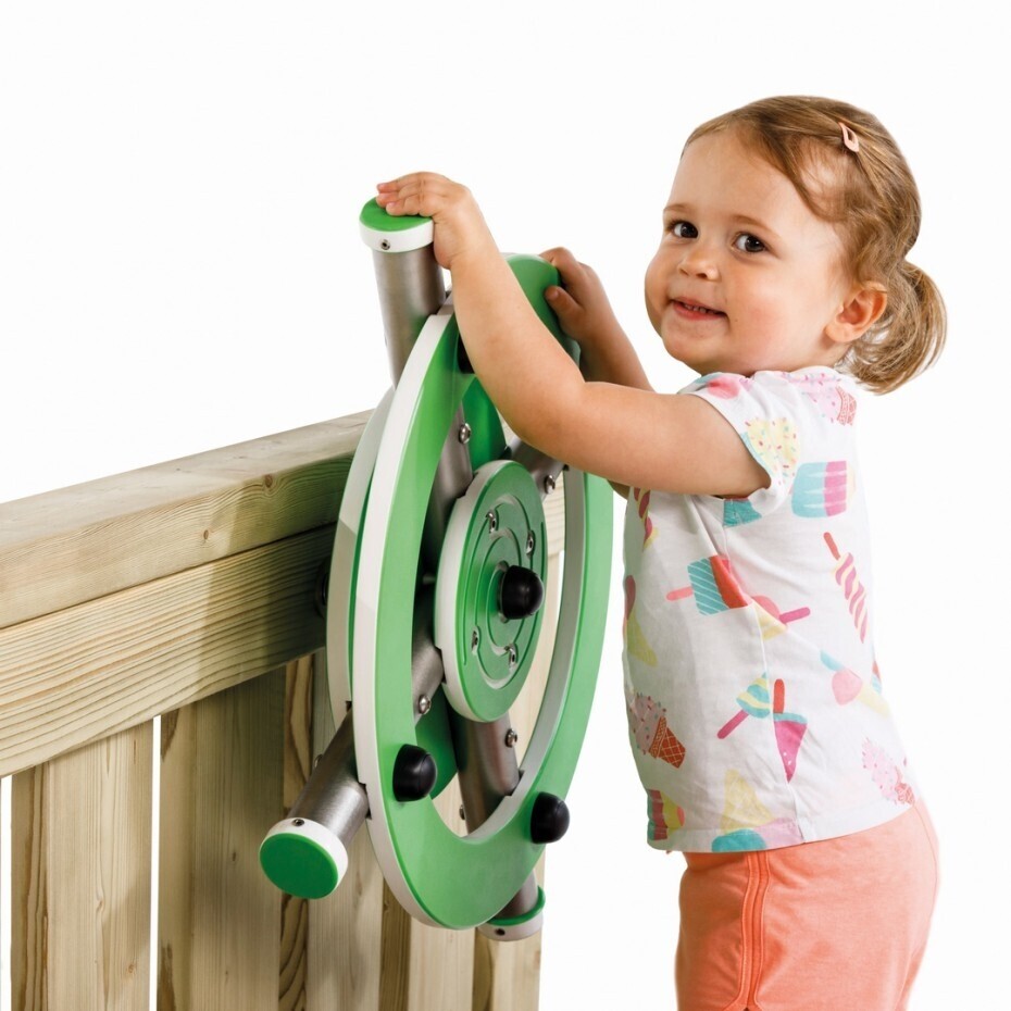Extra groot RVS Stuurwiel om een speeltoestel nog aantrekkelijker te maken. Een stuurwiel spreekt altijd erg aan bij kinderen, de fantasie wordt geprikkeld en er ontstaan de leukste rollenspellen. Het stuurwiel is gemaakt van RVS en stevig HDPE materiaal.