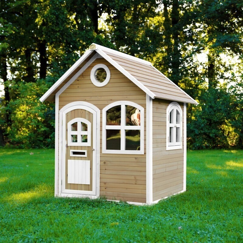 Julia is een veelzijdig houten speelhuis zonder vloer met halfronde deur en ramen. Bij mooi weer zet je de ramen open. Als het regent doe je de ramen weer dicht en zit je lekker droog. Julia kan worden uitgebreid met een veranda, een opbouw, een zandbak en schommel(s) en kan zo een Tom, Laura, Sarah of Liam speelhuis worden. \n \nDit speelhuisje is leverbaar in de kleurcombinatie: bruin/groen.