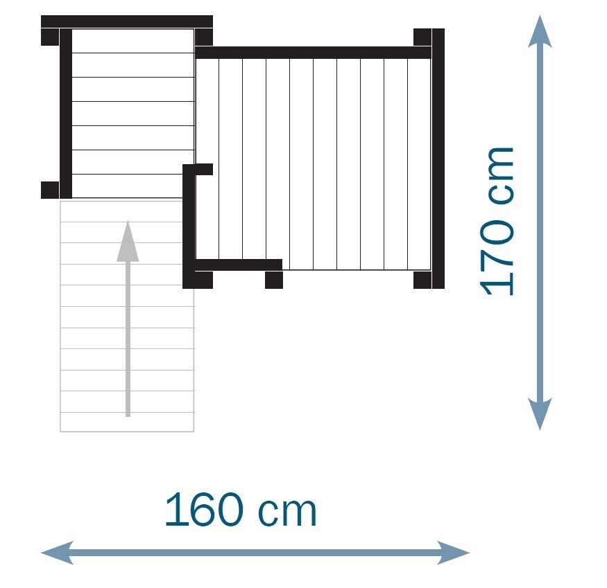 Al onze houtpakketten zijn universeel en gereed voor platformhoogte 120 cm. Als je het hoogste platform 120 cm en de laagste 90 cm wilt, dan zal de schuine wand gezaagd moeten worden, of je plaatst de wand wat vlakker. Ook kunnen de staanders worden ingekort zodat het dakje wordt verlaagd.