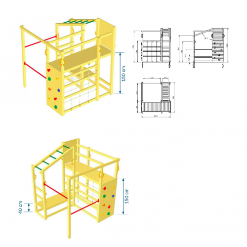 Gegarandeerd uren speelplezier op deze prachtige speeltoren. De Crossfit neemt 206 bij 215 cm ruimte in in uw tuin. Houd rekening met voldoende ruimte rondom het toestel: circa 1,5 tot 2 meter vrije ruimte. Als u een glijbaan, schommel of andere module aan de Crossfit aanbouwt, hebt u vanzelfsprekend meer ruimte nodig.