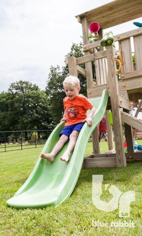 Als je kiest voor platformhoogtes 90 en 120 kun je er ook voor kiezen een glijbaan van 175 cm te plaatsen aan het platform van 90 cm. Ook is het mogelijk aan beide platformen een glijbaan te bevestigen. De glijbaan is optioneel en zal los erbij besteld moeten worden.