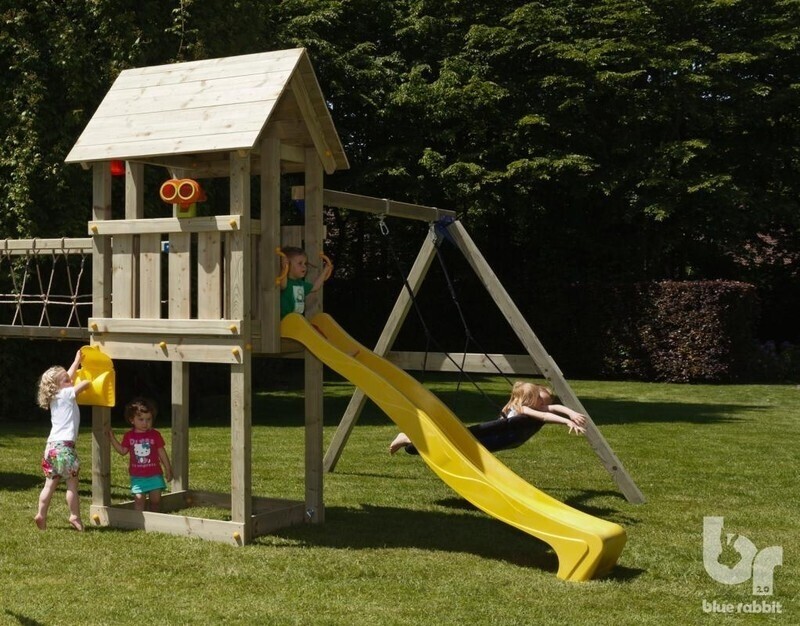 Dit compacte speeltoestel is ideaal in een kleinere tuin. Ook is deze speeltoren gemakkelijk uit te breiden met een aanbouwschommel of een andere leuke speelmodule. Op de begane grond is een zandbak. Glijbaan is te bestellen in verschillende lengtes. Als je gaat monteren dien je eerst te controleren welke lengte de bestelde glijbaan heeft: