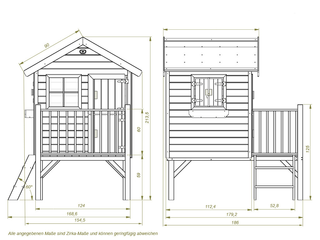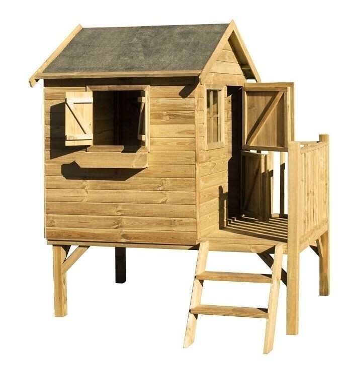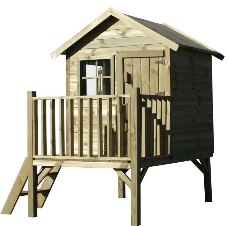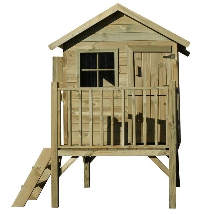 Houten speelhuis Funny L is een zeer stevig en stabiel speelhuis met diverse leuke items er op en er aan. Ook leuk uit te breiden met de accessoires.