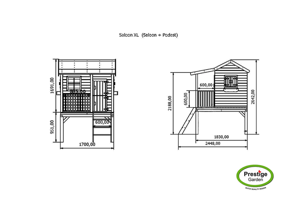 Verleng de speelhuissalon met dit 90 cm hoge platform.
