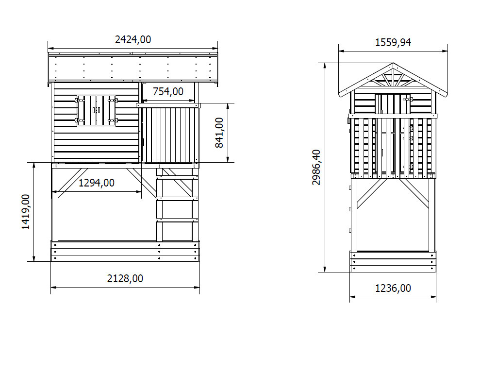 Het speelhuis is ook zelf af te halen (met een aanhanger). De afmetingen van het pakket zijn circa: 240 x 120 x 60 cm. Neem altijd van te voren even contact op of het speelhuis/toren daadwerkelijk op voorraad is.