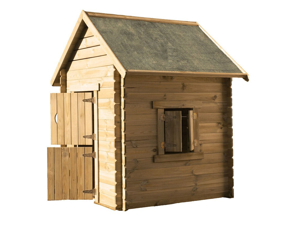 Het speelhuisje is gemaakt van geïmpregneerd vurenhout en is eenvoudig in elkaar te zetten.