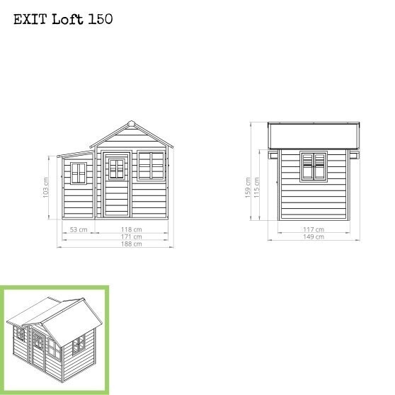 \nZoals voor alle speelhuisjes zijn er verschillende accessoires verkrijgbaar voor de EXIT Loft 150 houten speelhuisjes. Wat dacht je van een leuke picknickset met krukjes of een decoratie set waar je mooie tekeningen op kunt maken? Richt je speelplek helemaal in zoals jij het graag wilt en beleef de leukste avonturen in de buitenlucht! \n
