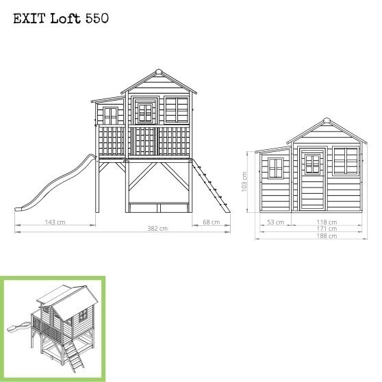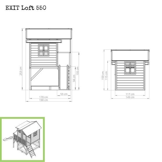 Zoals voor alle speelhuisjes zijn er verschillende accessoires verkrijgbaar voor de EXIT Loft 550 houten speelhuisjes. Wat dacht je van een leuke picknickset met krukjes of een decoratie set waar je mooie tekeningen op kunt maken? Richt je speelplek helemaal in zoals jij het graag wilt en beleef de leukste avonturen in de buitenlucht!