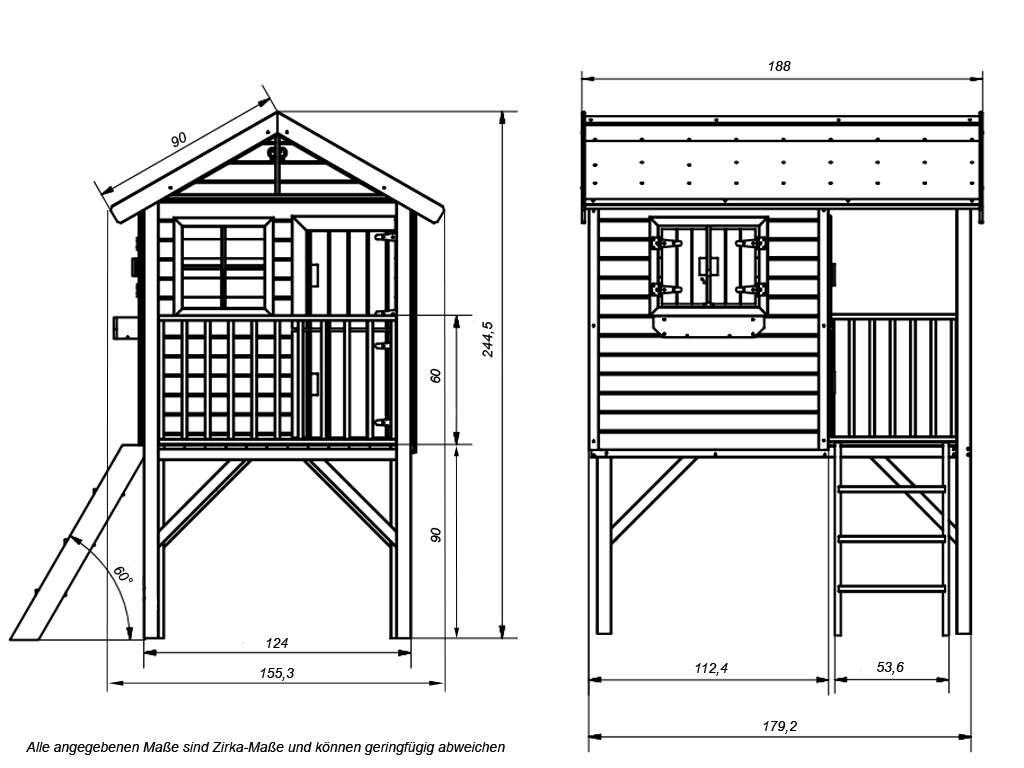 Afmetingen: 179 x 195 x 244cm (inclusief trap)