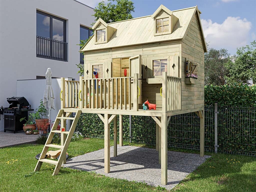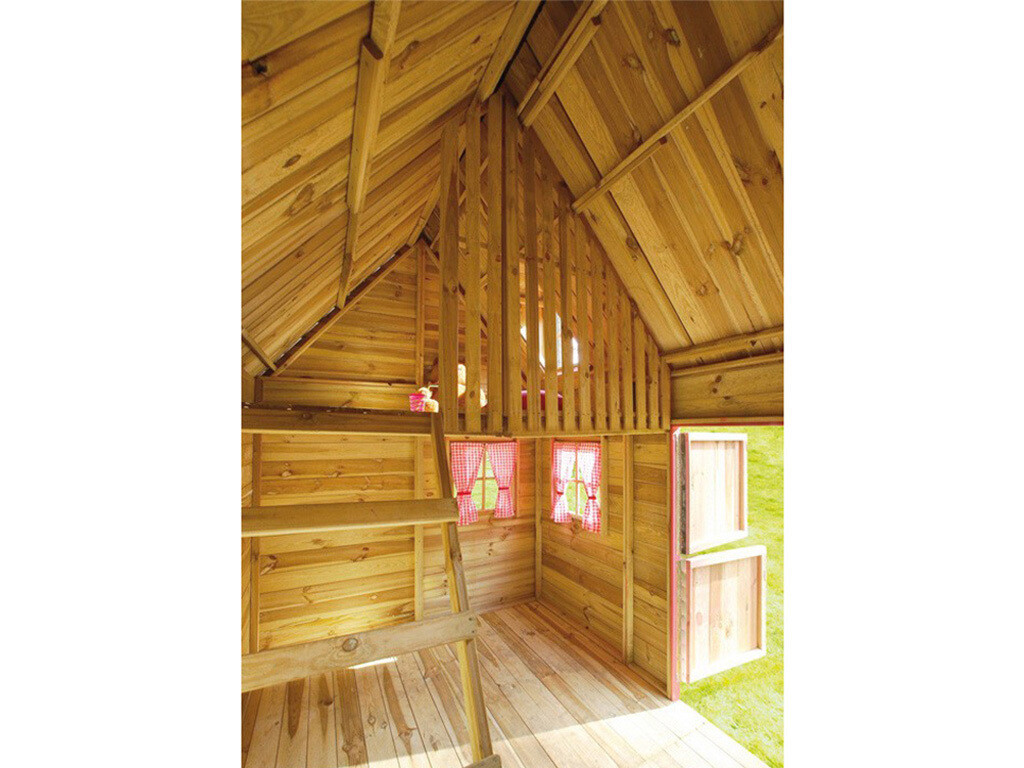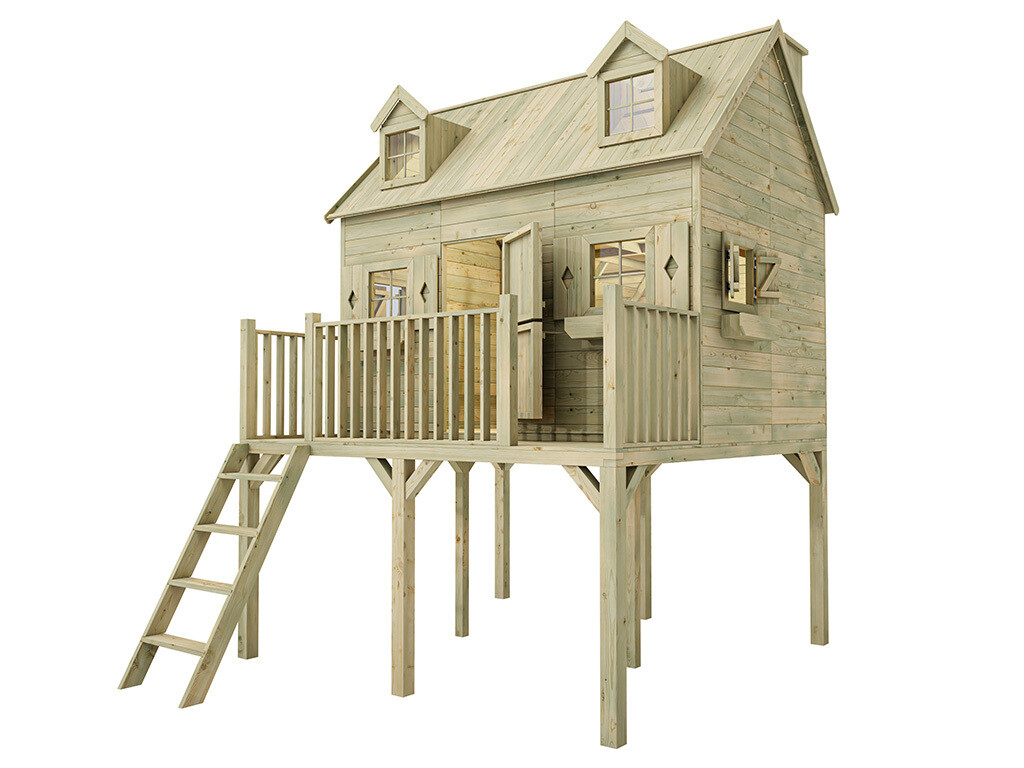 Op zoek naar een prachtig speelhuis voor uw kind? Dit speelhuisje is ontworpen met een ruimtelijk design. Het speelhuis is gemaakt van geïmpregneerd grenen hout. Het puntdakje zorgt voor een natuurlijke uitstraling en maakt van dit speelhuisje bijna een woonhuisje! Wat dit huis nog leuker maakt is dat er zelfs een zolder inzit met dakkapellen!