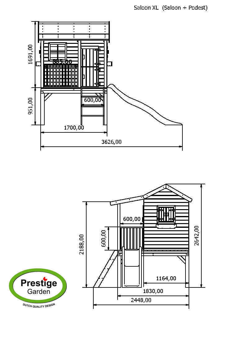 Verleng de speelhuissalon met dit 90 cm hoge platform.
