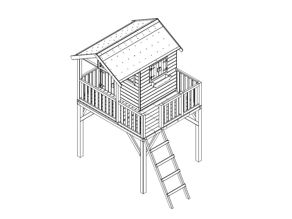 De 14 mm dikke paalwoning met veranda en balkon wordt een blikvanger in je tuin en zorgt voor veel speelplezier voor de kinderen.