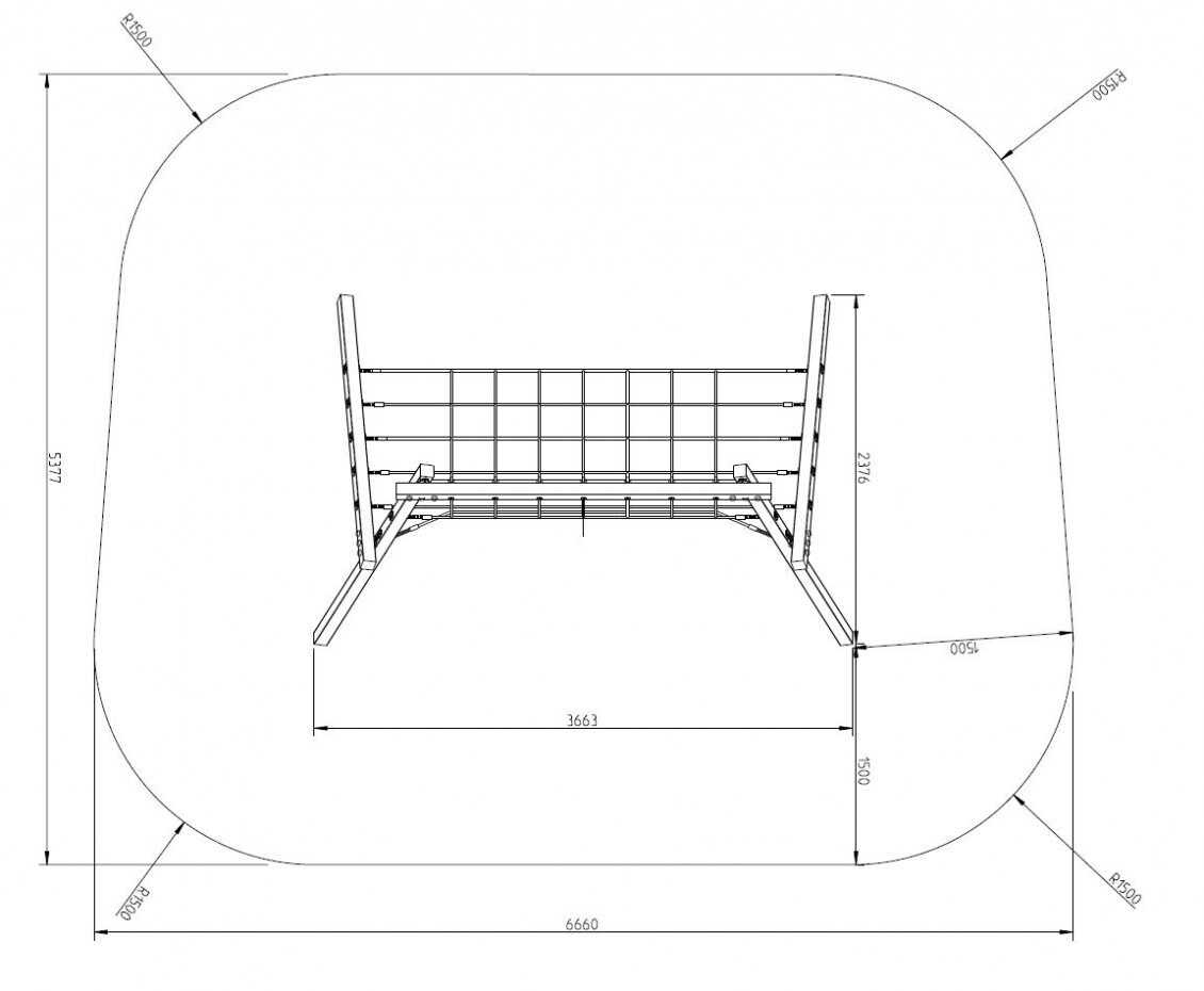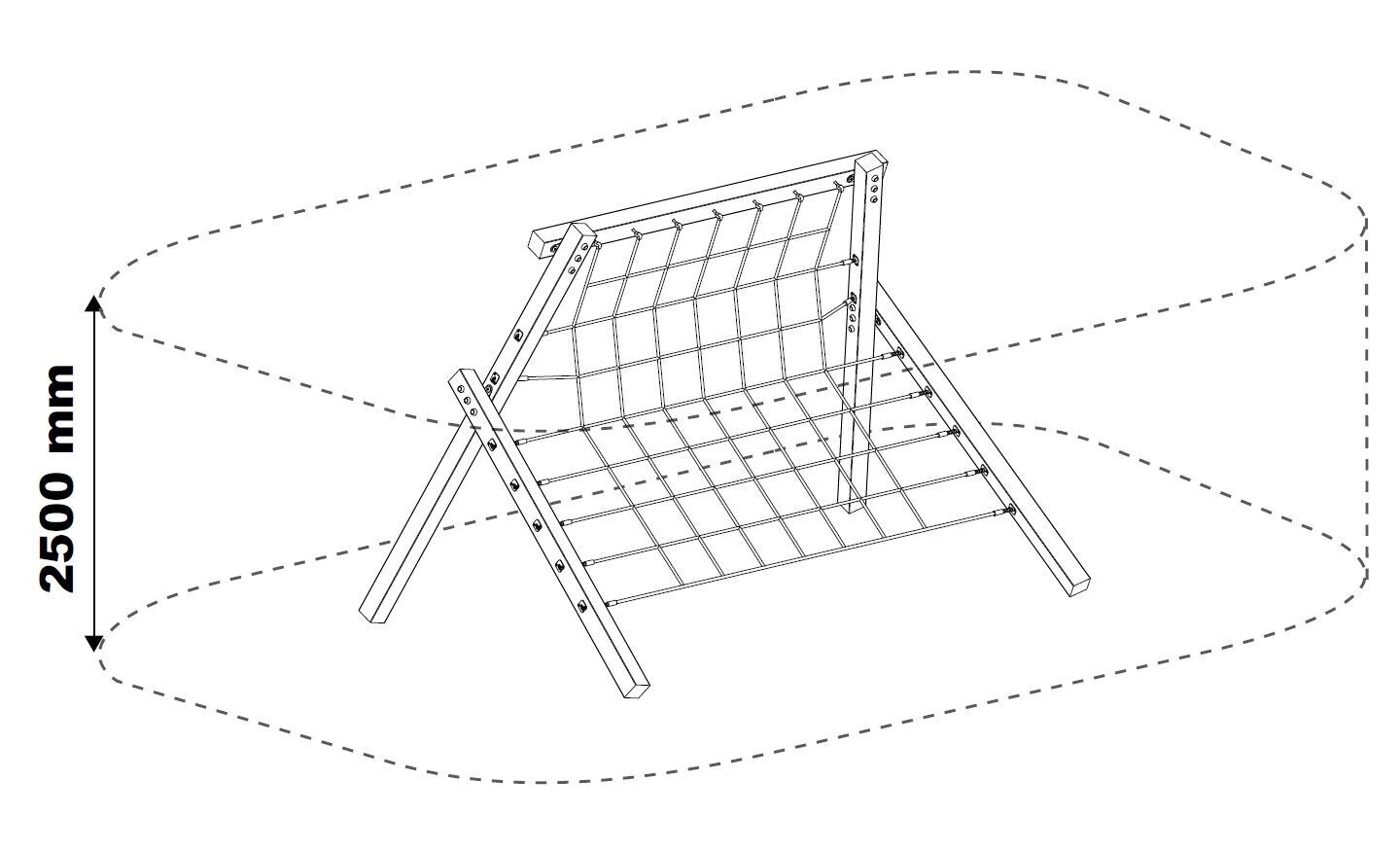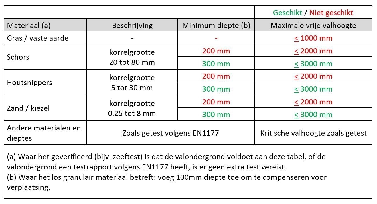 Valhoogte van dit toestel is 250cm. Als ondergrond adviseren wij zand, snippers of schors.