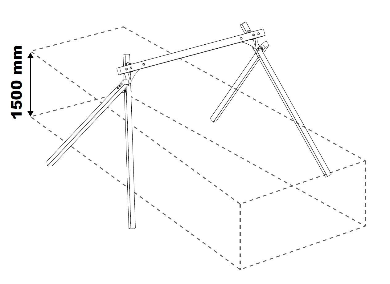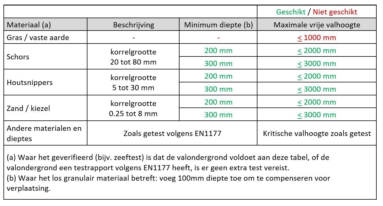 Valhoogte van dit toestel is 150cm. Als ondergrond adviseren wij zand, snippers of schors.