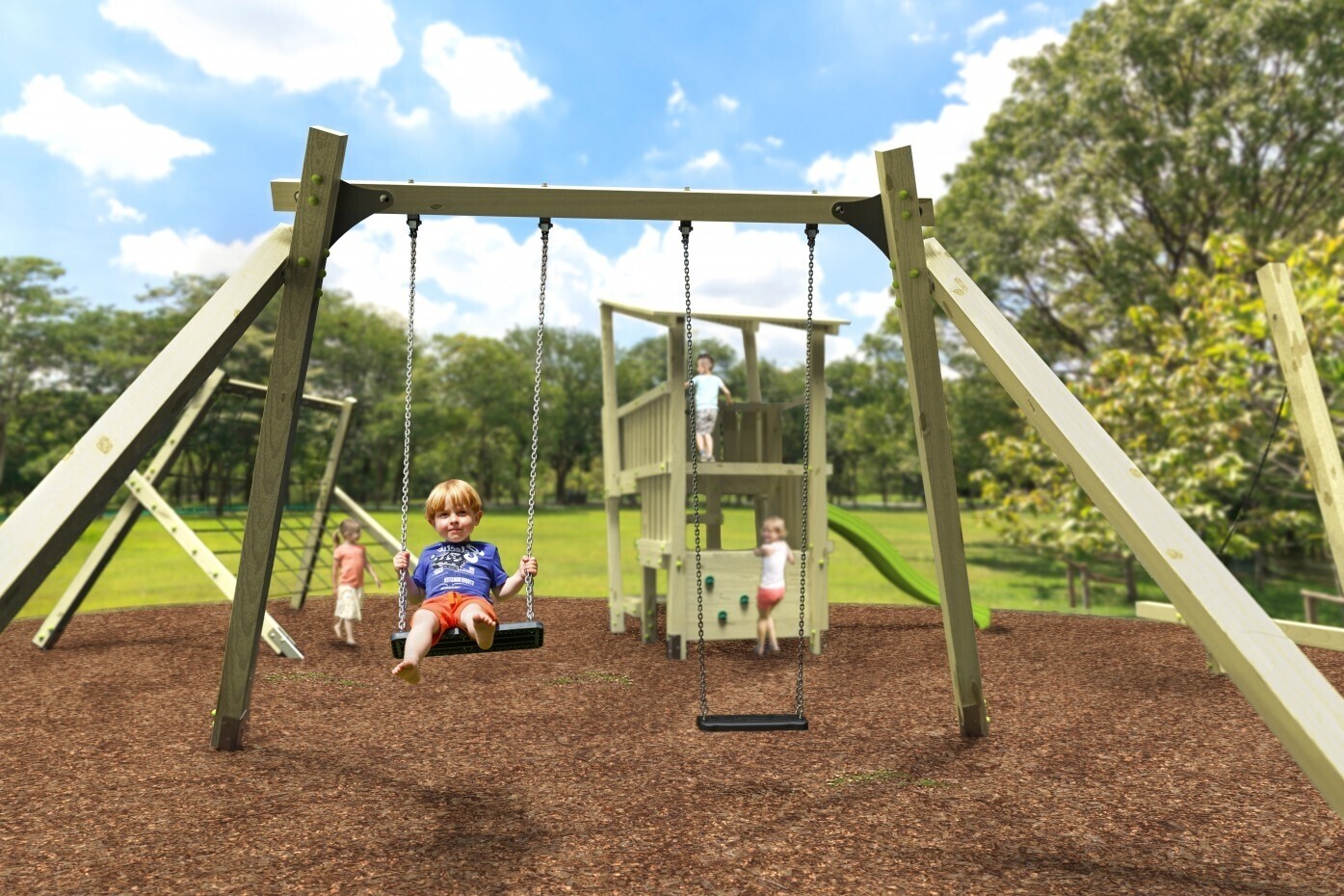 De losse White Rhino speeltoestellen zijn eenvoudig bij elkaar te plaatsen, zodat een complete speeltuin ontstaat. Vraag naar de mogelijkheden en ruimte die nodig is per onderdeel.