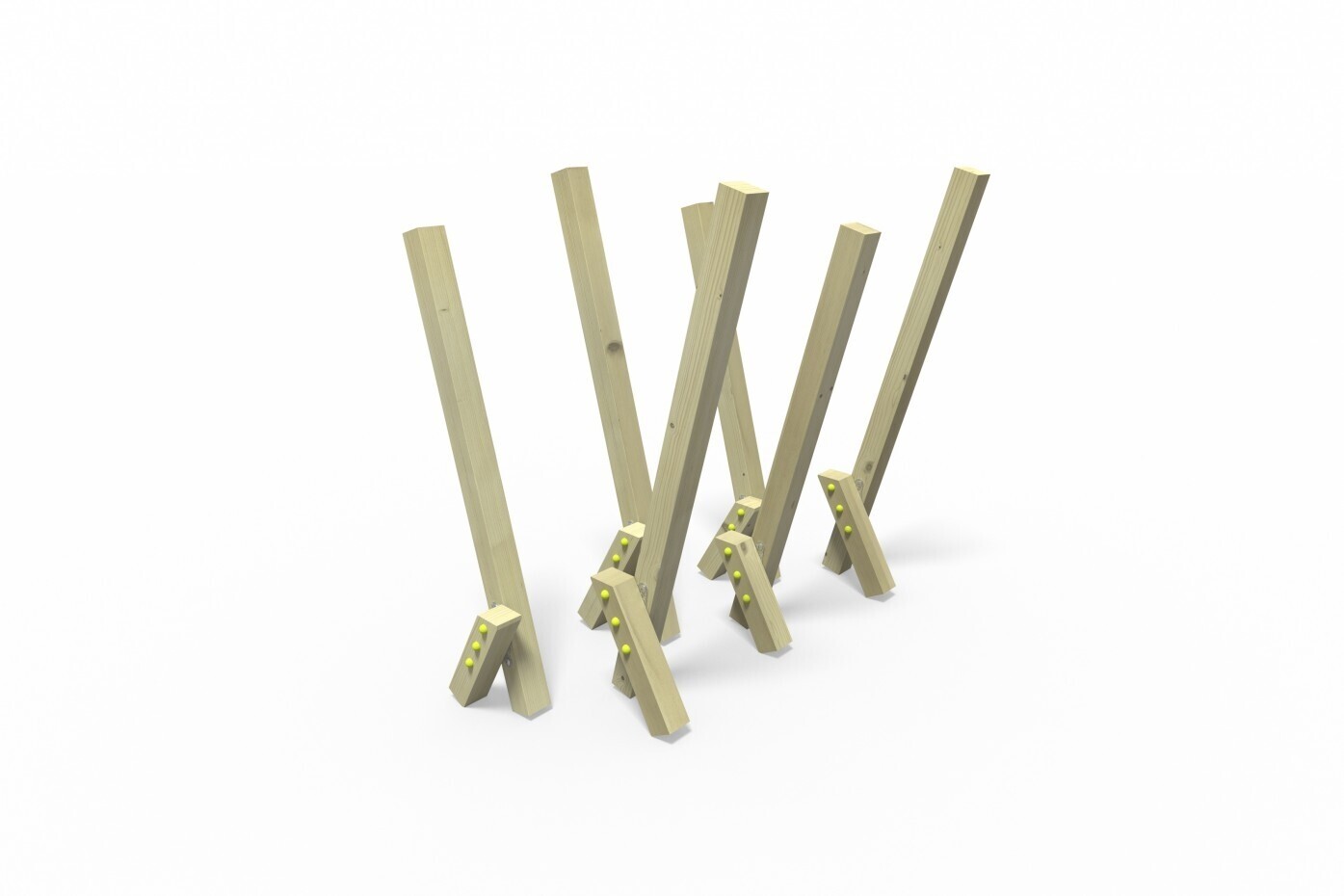 Gebruikt hout is Vuren geïmpregneerd en waar nodig heeft het hout een sterkteklasse van C24. Dit constructiehout is zeer geschikt om onderhoudsvrije speeltoestellen te maken. Het hout wordt op maat gezaagd geleverd met afgeronde hoekjes.