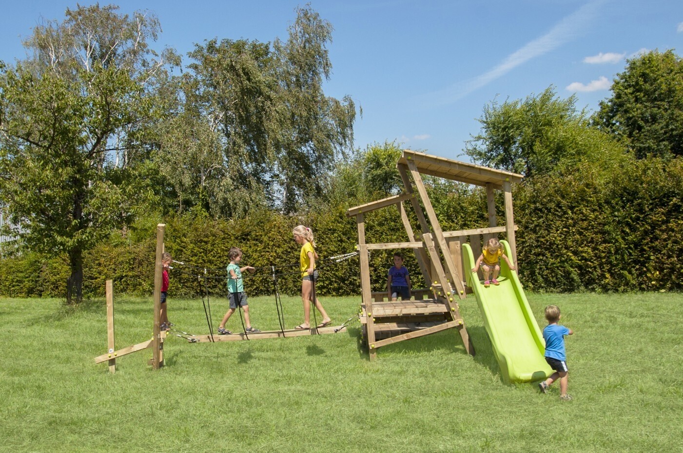 Prachtig zelf-bouwpakket wat makkelijk op te bouwen is, zonder dat u een specialist of vakman nodig heeft. Geïnteresseerd in montage neem contact op voor een bijpassende offerte. Ook behoeft dit speeltoestel geen speciale keuring achteraf. Geschikt voor camping, restaurant, kinderdagverblijf, school, openbare speelplaats e.d.