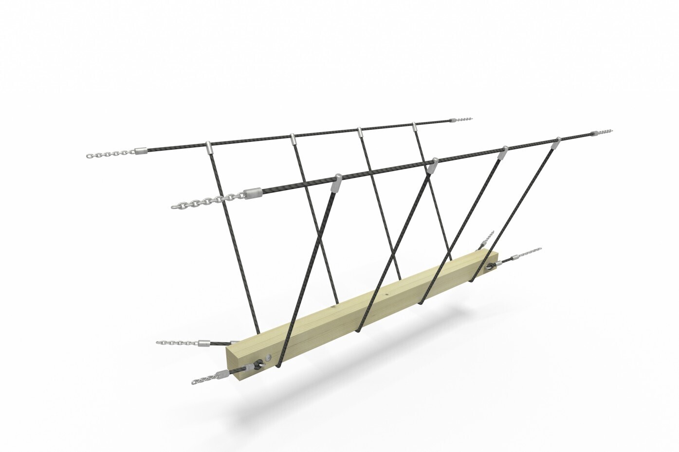 De touwen zijn van gewapend touw. Dit betekent een stalen kern, omwikkeld met pp-touw.
