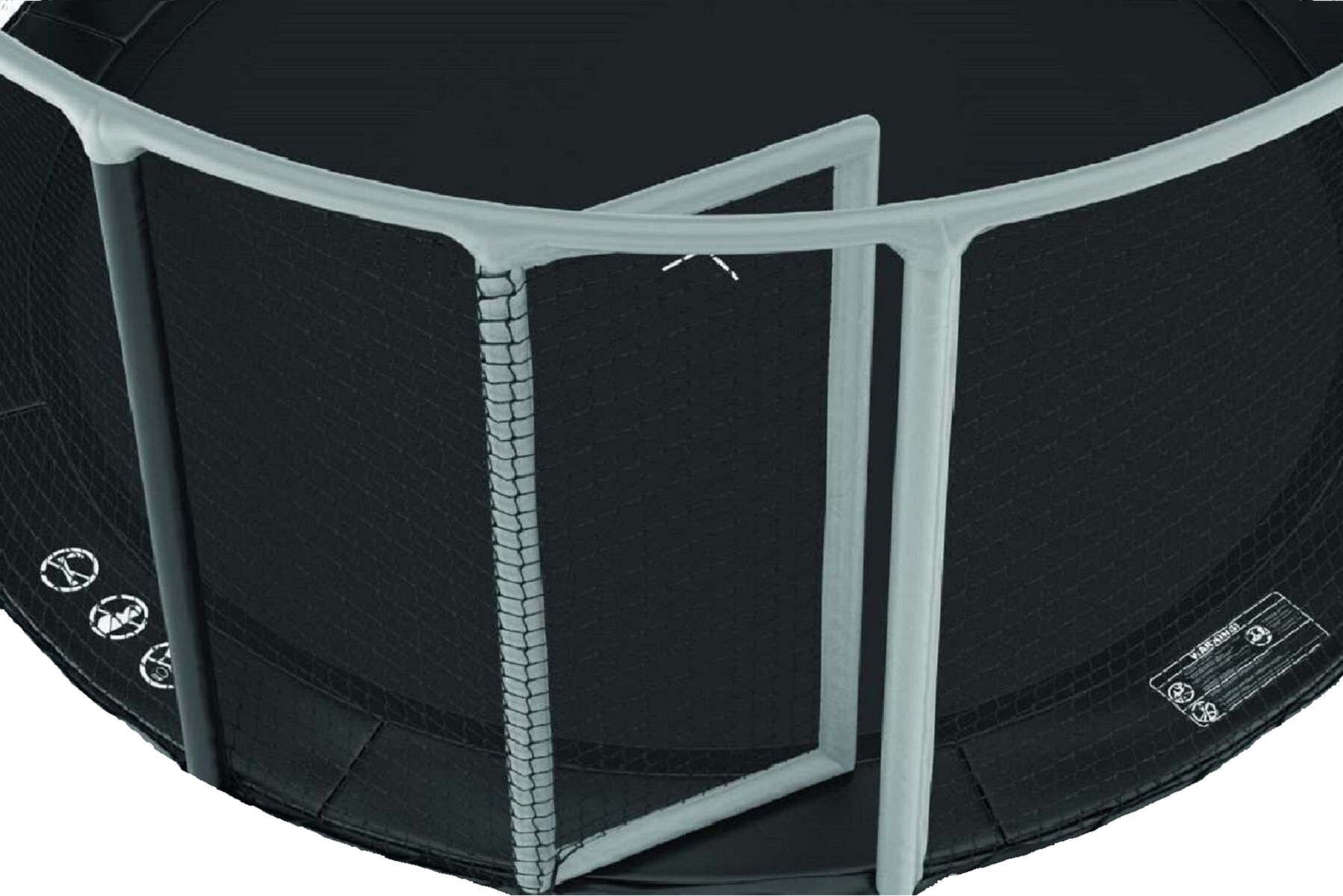 Trampolines voor buiten zijn geliefd als sport- en speltoestel bij kinderen en volwassenen. Met de buitentrampoline "Akrobat" Gallus bieden wij een zeer complete en robuuste trampoline aan welke speciaal is ontwikkeld voor de recreatie sector. Het extreem robuuste model is de favoriete speelplaats in bij (kleuter)scholen, een instelling, campings evenals speeltuinen, restaurants en hotels. De extra brede randafdekking gemaakt van een zwaar pvc-zeilmateriaal en 30 mm gesloten cell schuim biedt extra veiligheid en een extreem lange levensduur. Het netmateriaal van het veiligheidsnet is zwaar uitgevoerd en bevestigd aan een zwaar uitgevoerd stalen boven frame welke is bekleed met foam en zeilmateriaal. Het veiligheidsnet is voorzien van een eenvoudige toegang door middel van een ingebouwde toegangsdeur. Hierdoor goede toegankelijkheid, ook voor eventuele begeleiders. Het frame geheel dubbel uitgevoerd (volledig boven en onder frame) en is gefabriceerd van thermisch gegalvaniseerd staal, hierdoor een onverslijtbaar frame. De beschermrand Topkwaliteit gebruikte materialen. Het bestaat uit een kleurvast bisonyl zeildoek van de zwaarste kwaliteit, gevuld met een 30 mm dik waterafstotend (gesloten cel) schuimrubber, handmatig en vakkundig ineengestikt. Hierdoor ligt het randkussen perfect op de veren en het frame en zorgt voor optimale veiligheid. Het randkussen is aan de onderkant voorzien van ingeslagen koperen ogen en wordt met elastische toggle loops aan het trampolineframe bevestigd. Verder zitten er lussen aan de onderzijde van de beschermrand welke zorgt dat de beschermrand van de trampoline te allen tijde vlak op de veren blijft liggen ook tijdens de neergaande beweging met het springen. \n \nHet veiligheidsnet Dit veiligheidsnet is voorzien van een toegangsdeur wat zorgt voor een makkelijke, veilige en duurzame toegang tot de trampoline. Deze toegangsdeur is voorzien van schuim en zeilmateriaal zodat je jezelf niet kunt bezeren. Bovendien valt deze deur automatisch dicht. Dit is een voordeel ten op zichte van een toegang met een rits, clips of klittenband. In de praktijk staat deze ingang vaak open, omdat kinderen niet de moeite neemt om deze iedere keer netjes af te sluiten, dit met alle risico’s van dien. Of iemand struikelt over de brede band die aan de onderkant van het veiligheidsnet is gestikt. Het duurzame netmateriaal heeft een grote maaswijdte wat zorgt voor een vrije doorkijk en maakt deze minder windgevoelig. De kleur van de hoezen en het net is zwart/grijs. De hoezen zijn net als de trampolinerand gemaakt van duurzame materialen dat zorgt voor een lange levensduur. Wat maakt dit veiligheidsnet verder uniek? In tegenstelling tot andere veiligheidsnetten is hier gekozen voor een volledig stalen boven frame voorzien van schuim en zeilmateriaal waardoor deze heel blijft als kinderen eraan gaan hangen. Hierdoor is dit veiligheidsnet extra geschikt voor openbaar gebruik. \n \nHet springdoek AkroVent springdoek is een geperforeerde springmat die veel lucht doorlaat, zodat je nagenoeg geen weerstand ondervindt bij het springen. Vele merken pretenderen deze eigenschap te hebben maar dit is niet te vergelijken met dit mat materiaal, maar liefst 52,5% van het springdoek oppervlak is open uitgevoerd! Hierdoor heeft dit springdoek een geweldige bounce. Bij het springen klappert de beschermrand niet op de springmat, dus minder geluid tijdens het springen. Door de open structuur is het springdoek zeer snel droog. De veer dikke dubbel conische veren voor onze trampolines. Onze speciaal ontworpen dubbel conische veren hebben een optimale rebound. Deze rebound is de perfecte combinatie van soepelheid, maximale belastbaarheid en een maximale breekweerstand. Dit type veer zorgt ervoor dat de trampolines soepeler en lekkerder springen dan welke andere trampoline dan ook. \n \nNa het fabriceren (het rollen) van de trampoline veer wordt deze enige tijd verwarmd (300-500°C) waardoor de interne spanningen binnen het materiaal verdwijnen. Hierdoor wordt de kans op een breuk sterk verkleind en de rek vergroot. Dit ziet u niet, maar dit merkt u wel in levensduur en sprongeigenschappen! Tenslotte gaat het om het lekkere springen, nietwaar?
