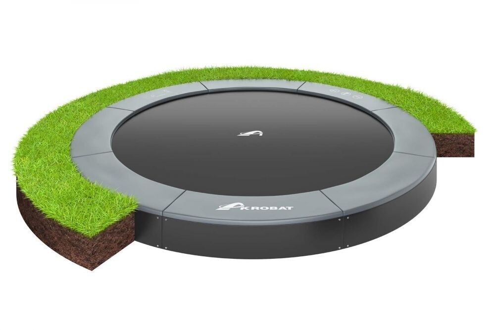 FLAT TO THE GROUND Het nieuwste design op trampoline gebied is de volledig ingegraven trampoline en noemen we de flat-to-the ground trampoline. Deze innovatieve trampoline kan je namelijk zo ingraven dat hij volledig geïntegreerd is in de tuin. Geeft een strakke en moderne uitstraling, en valt niet op in de tuin. Staat elegant in iedere omgeving. Ook is deze trampoline eenvoudig te betreden, omdat deze gelijk is met het omringende grondoppervlak. De flat to the ground trampoline heeft verder alle voordelen van een Inground trampoline.