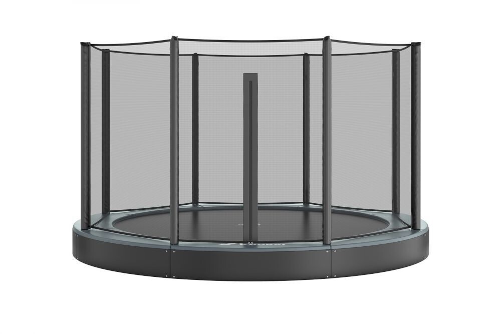 FLAT TO THE GROUND Het nieuwste design op trampoline gebied is de volledig ingegraven trampoline en noemen we de flat-to-the ground trampoline. Deze innovatieve trampoline kan je namelijk zo ingraven dat hij volledig geïntegreerd is in de tuin. Geeft een strakke en moderne uitstraling, en valt niet op in de tuin. Staat elegant in iedere omgeving. Ook is deze trampoline eenvoudig te betreden, omdat deze gelijk is met het omringende grondoppervlak. De flat to the ground trampoline heeft verder alle voordelen van een Inground trampoline.