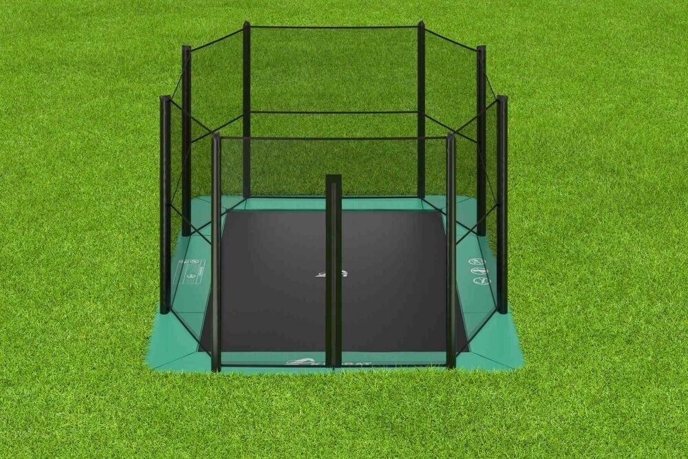 FLAT TO THE GROUND Het nieuwste design op trampoline gebied is de volledig ingegraven trampoline en noemen we de flat-to-the ground trampoline. Deze innovatieve trampoline kan je namelijk zo ingraven dat hij volledig geïntegreerd is in de tuin. Geeft een strakke en moderne uitstraling, en valt niet op in de tuin. Staat elegant in iedere omgeving. Ook is deze trampoline eenvoudig te betreden, omdat deze gelijk is met het omringende grondoppervlak. De flat to the ground trampoline heeft verder alle voordelen van een Inground trampoline.