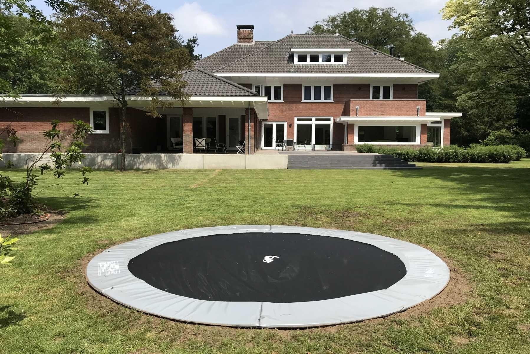 De Akrobat Trampoline Primus Flat to the ground is een top design ronde trampoline, staat prachtig in elke tuin, en heeft de allerbeste springeigenschappen