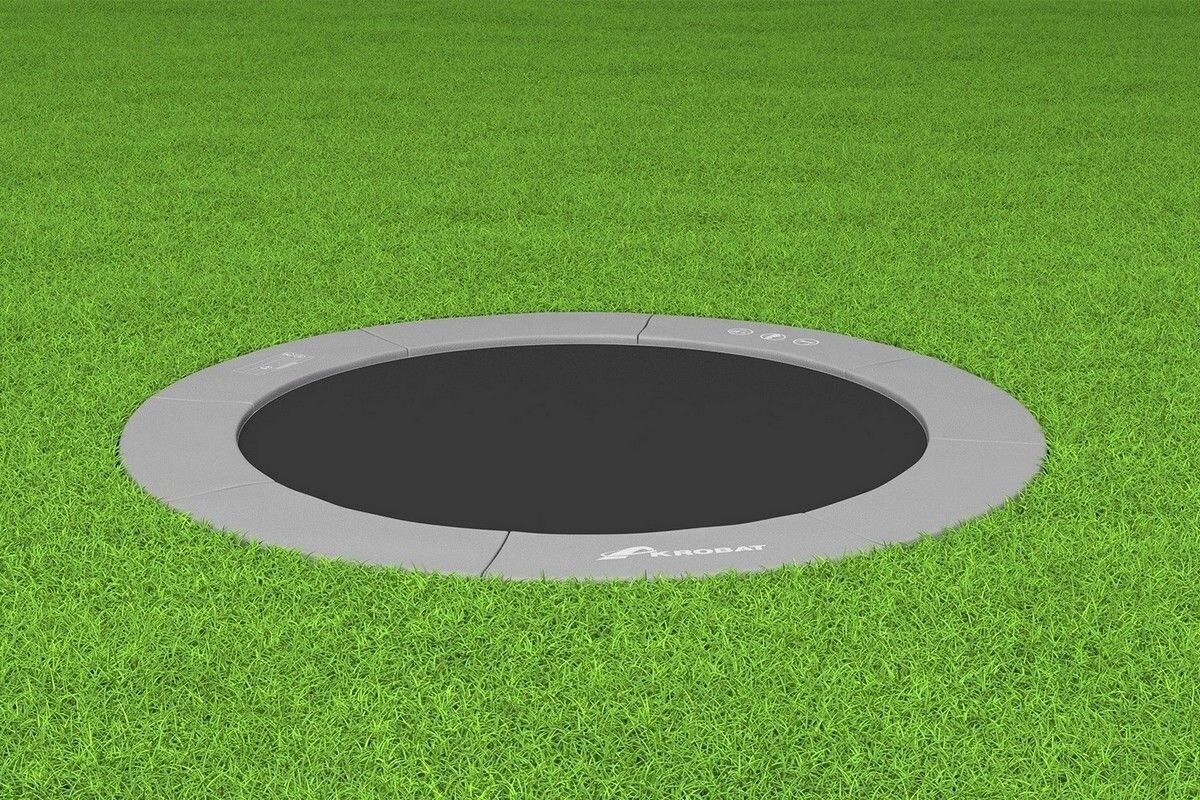 Dit onopvallende volledige ingegraven ontwerp zorgt ervoor dat de Akrobat Trampoline Primus Flat to the ground elegant staat in iedere omgeving. Ook de kleur combinatie van zwart met grijs geeft een zeer strakke en moderne uitstraling.